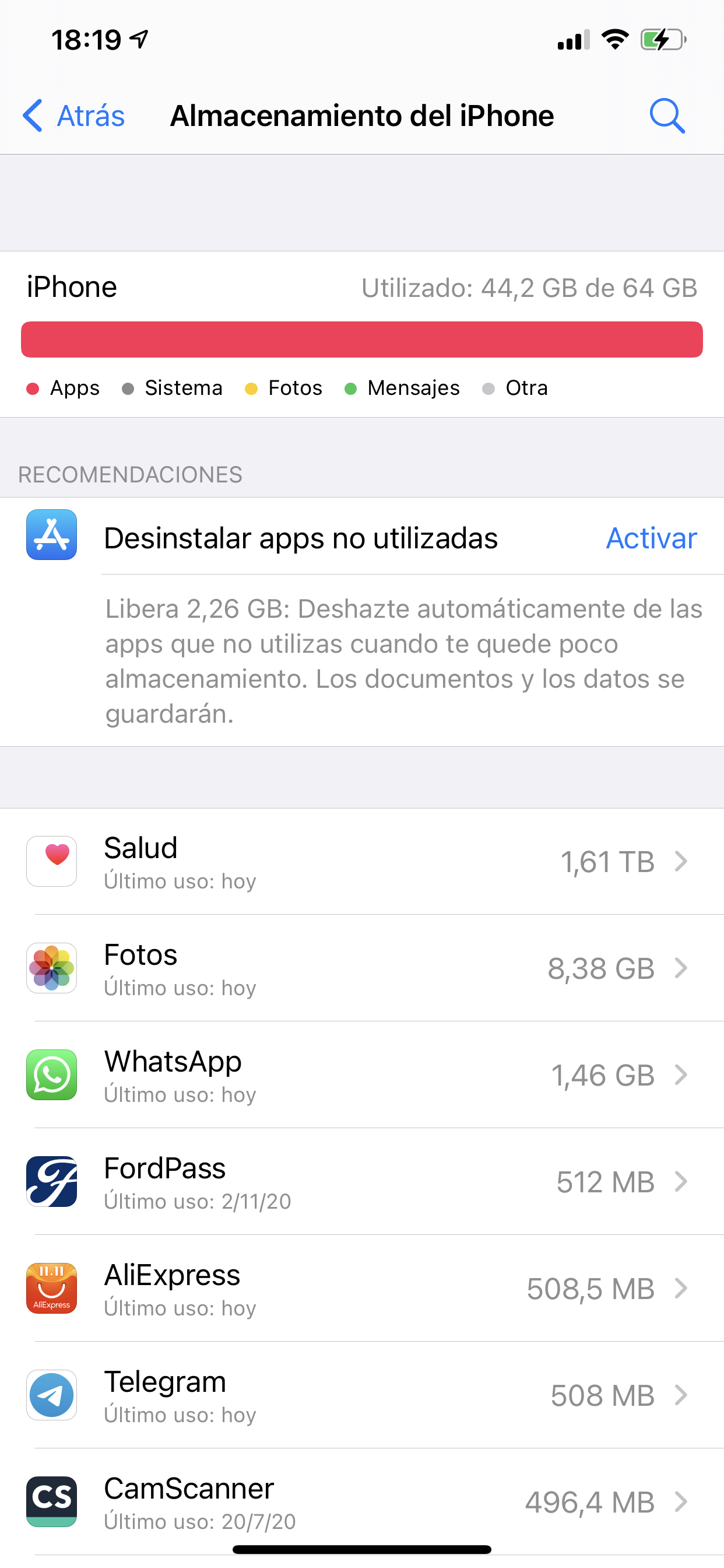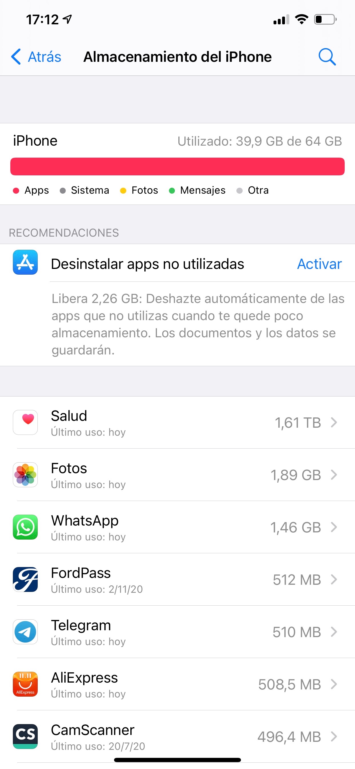 Sin duda, los valores que muestra el iPhone con respecto al almacenamiento de la app Salud son desorbitados 😱
