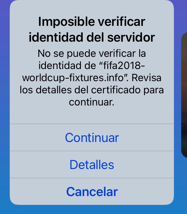 Gracias por tu respuesta. Está bien si no observas la opción de perfiles ya que esta sólo aparece si tienes un perfil instalado. Dado a la descripción del mensaje en la captura de pantalla, verifica si tienes configurado un calendario que anteriormente te informaba sobre las fechas del mundial de FIFA 2018. Sigue estos pasos y verifica si observas un calendario programado en tu iPhone con esta descripción.