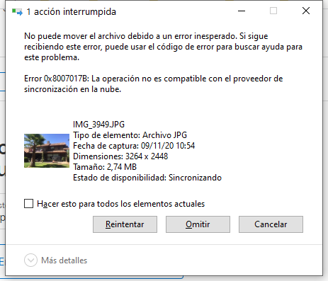 Entiendo que actualmente no puedas mover tus archivos de imagen de iCloud a tu ordenador. El error que estás reciviendo parece provenir de Windows, por lo tanto, te recomiendo que contactes con el soporte técnico de Microsoft, te dejo el enlace a continuación: