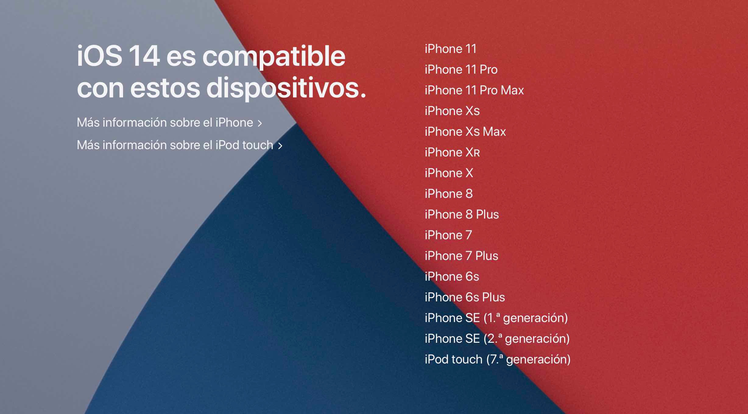 Adjunto la lista de los dispositivos compatibles con iOS 14 y si necesitas información de Cómo actualizar a iOS 14 o iPadOS 14 - Soporte técnico oficial de Apple.