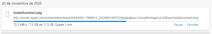 Ahora bien, ¿realizaste la descarga de la actualización de macOS Big Sur desde el panel de Actualización de software en las Preferencias del Sistema? Puedes confirmar que el instalador de la actualización se haya descargado al revisar si este está guardado en la carpeta de Aplicaciones bajo el nombre "Instalar macOS Big Sur". Si no aparece allí, puedes intentar el realizar nuevamente la descarga mientras utilizas tu Mac en modo seguro, ya que cabe la posibilidad de que alguna app que tengas instalada, como un antivirus o cortafuegos, pudiera estar interfiriendo con la descarga. De igual forma, verifica que tu Mac esté conectada correctamente a una conexión a Internet estable, pudiendo incluso probar en repetir la descarga al conectar tu Mac a otra red Wi-Fi si tienes la posibilidad de hacerlo. En caso de que aún continúes sin poder descargar la actualización, prueba en intentar descargar el paquete que la contiene desde el servidor de Apple abriendo el siguiente enlace en Safari: http://swcdn.apple.com/content/downloads/50/49/001-79699-A_93OMDU5KFG/dkjnjkq9eax1n2wpf8rik5agns2z43ikqu/InstallAssistant.pkg Al finalizar, se guardará en tu carpeta de Descargas un paquete de instalación llamado "InstallAssistant.pkg", el cual al abrirlo te guiará por unos pasos para que al final se guarde el instalador de macOS Big Sur en tu carpeta de Aplicaciones.