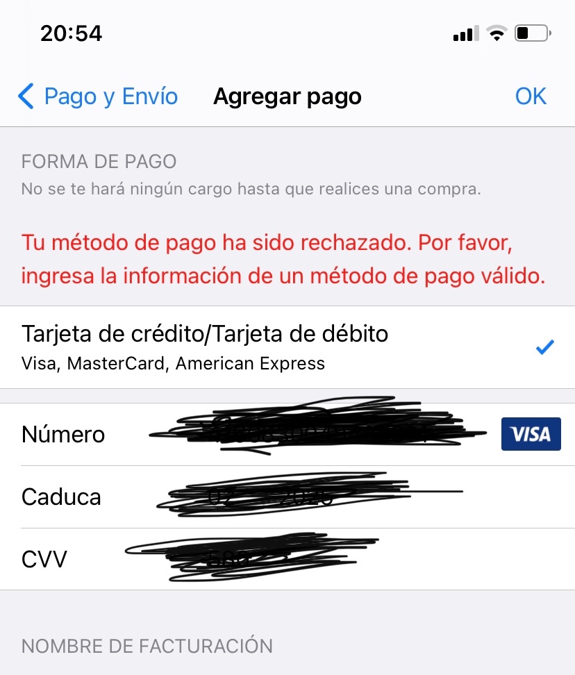 He intentado varías veces ingresar mi método de pago pero siempre me sale eso, alguien que me ayude
