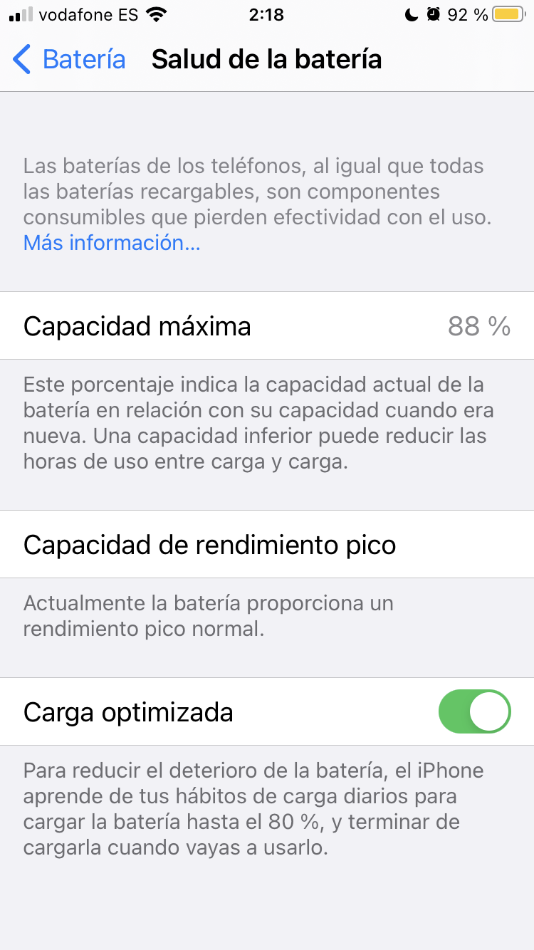 Tengo un iPhone que posee 9 meses y una semana de uso, y la salud de su batería se encuentra al 88%, no me imagino cuando cumpla el año...soluciones?
