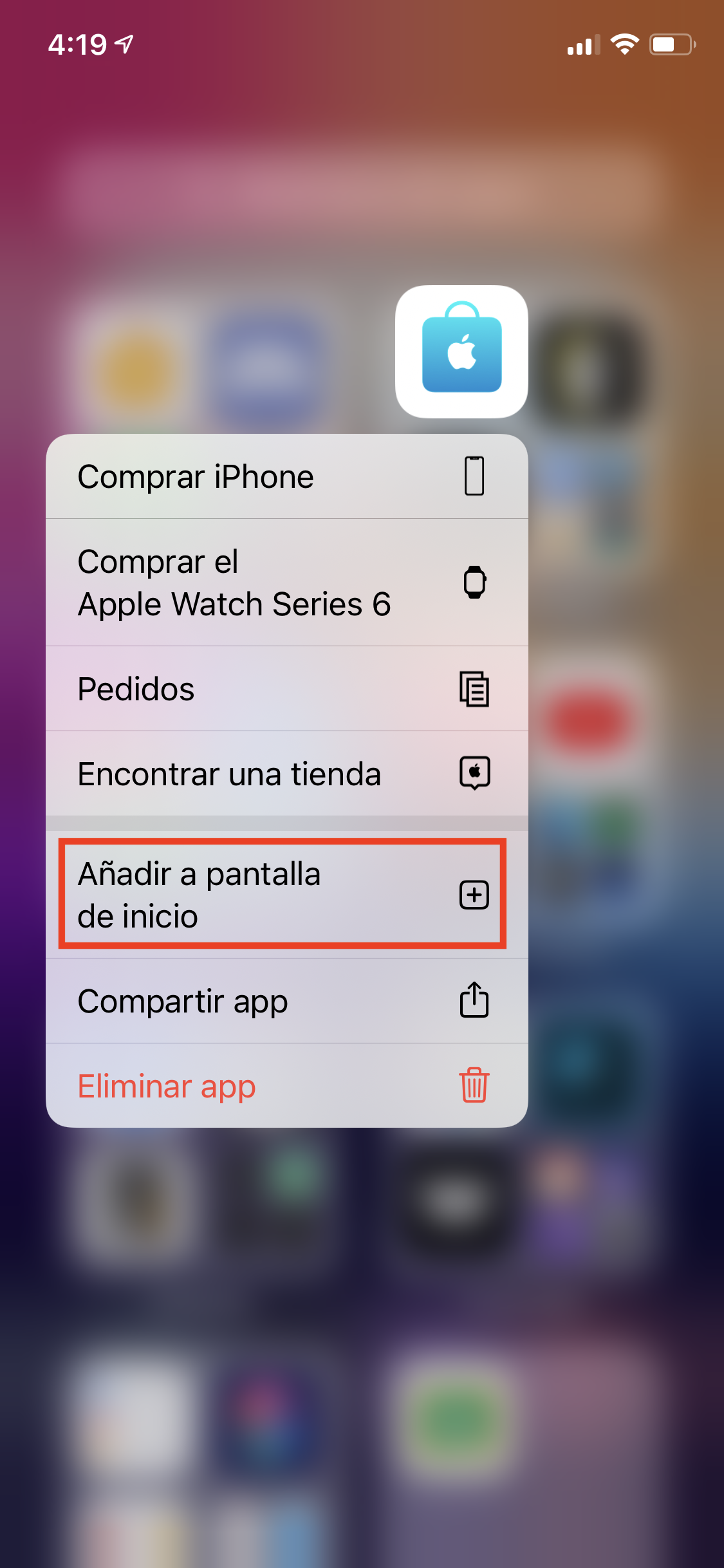 Si quieres volver a añadir una aplicación que has borrado solo en la pantalla de inicio, simplemente búscala en la biblioteca de apps y mantén pulsado hasta que te salgan varias opciones. Finalmente selecciona la opción "Añadir a la pantalla de inicio".