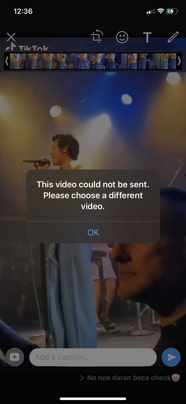 Me da error al intentar enviar un video creado por mi telefono ( no así si el video es reenviado desde otro movil ) saliendo el mensaje "No se pudo enviar el video. Por favor selecciona un video diferente ".
