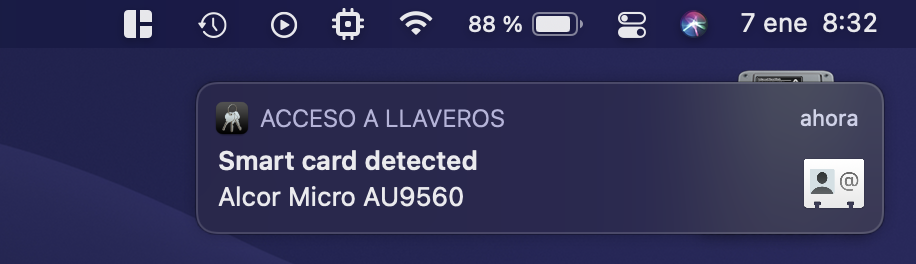 Lo curioso es que ahora, cada vez que conecto o desconecto el DNI electrónico, me sale una notificación tal que así: