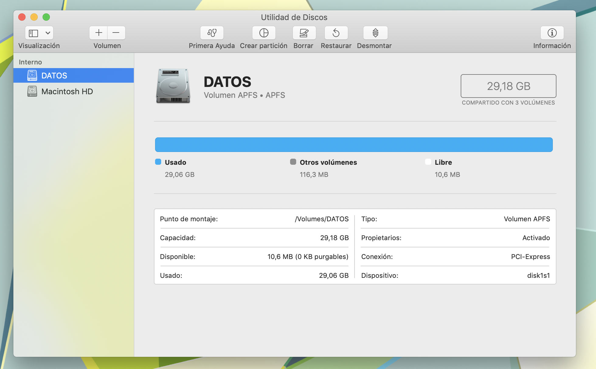Recuerde que no es bueno que el volumen principal tenga poco espacio disponible debido a que el OS no trabaja bien si esto sucede.-