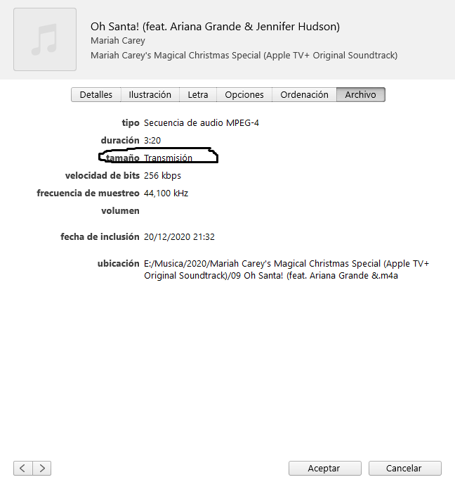 Ayuda Biblioteca Itunes - Archivos en modo Transmision