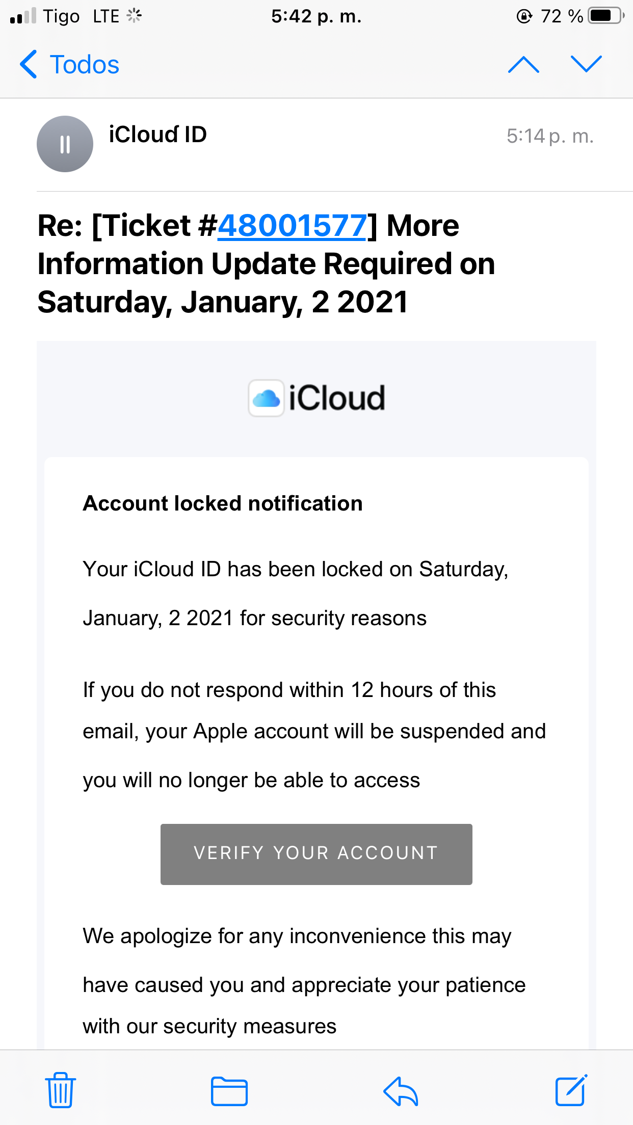 Si recibes un correo electrónico sospechoso que parece ser de Apple, reenvíalo a reportphishing@apple.com.