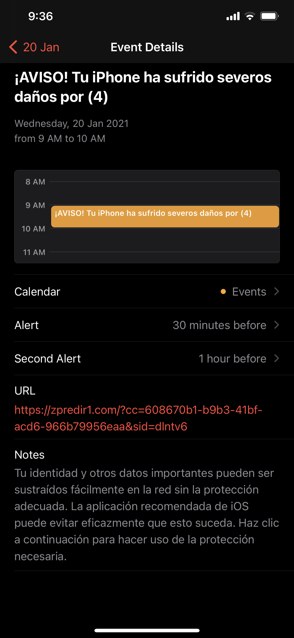 Mi llega mensaje en mi calendario diciendo “tu iphone ha sufrido severos daños por (4)”