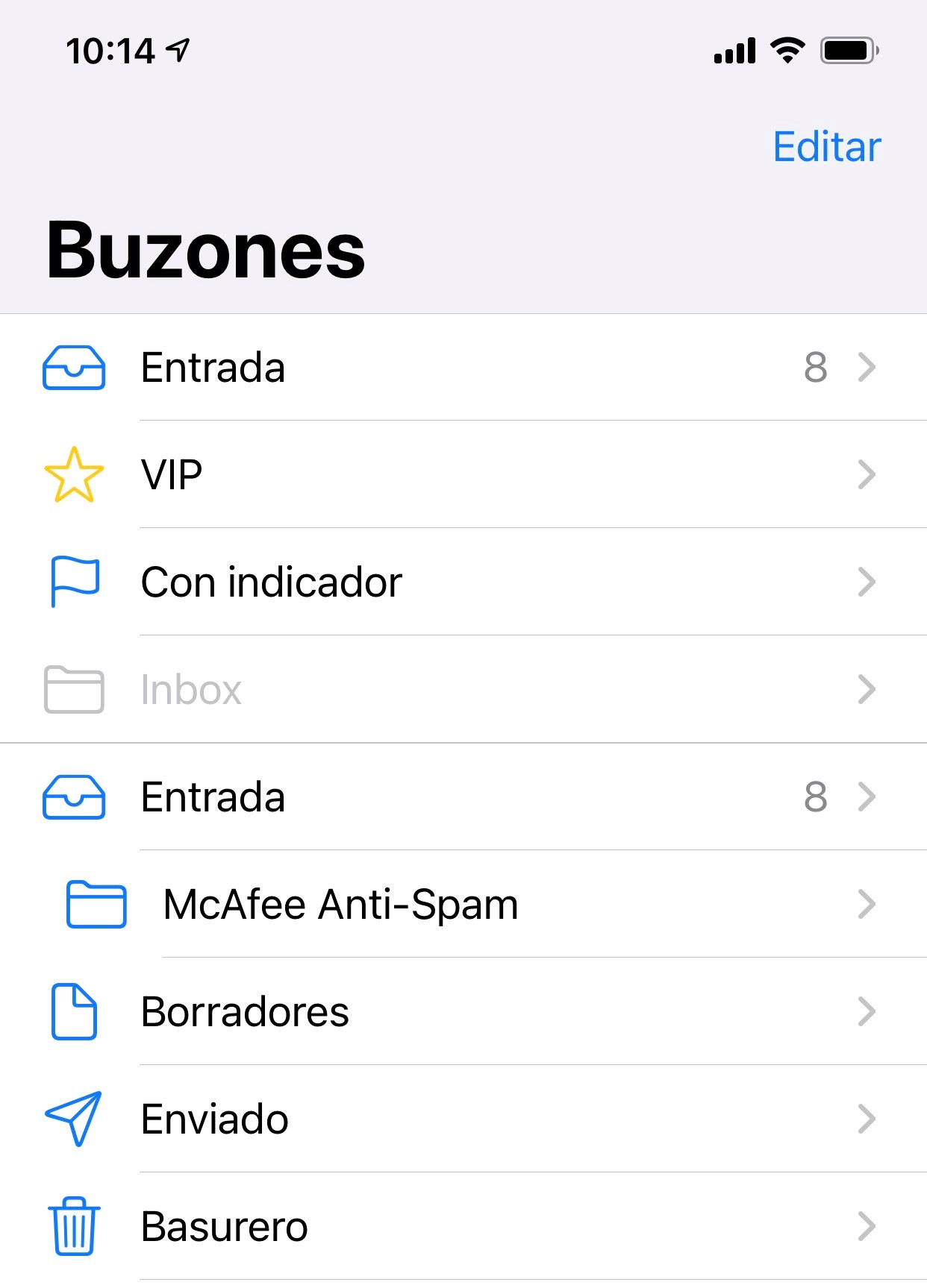 Solo tengo una cuenta de Hotmail que utilizo diariamente, así la he tenido más de 5 años en diferentes iPhones, solo que ahora me está presentando el problema de que algunos correos se están yendo a las ma carpeta llamada inbox (qué yo no la hice) y además está en gris, no la puedo editar.