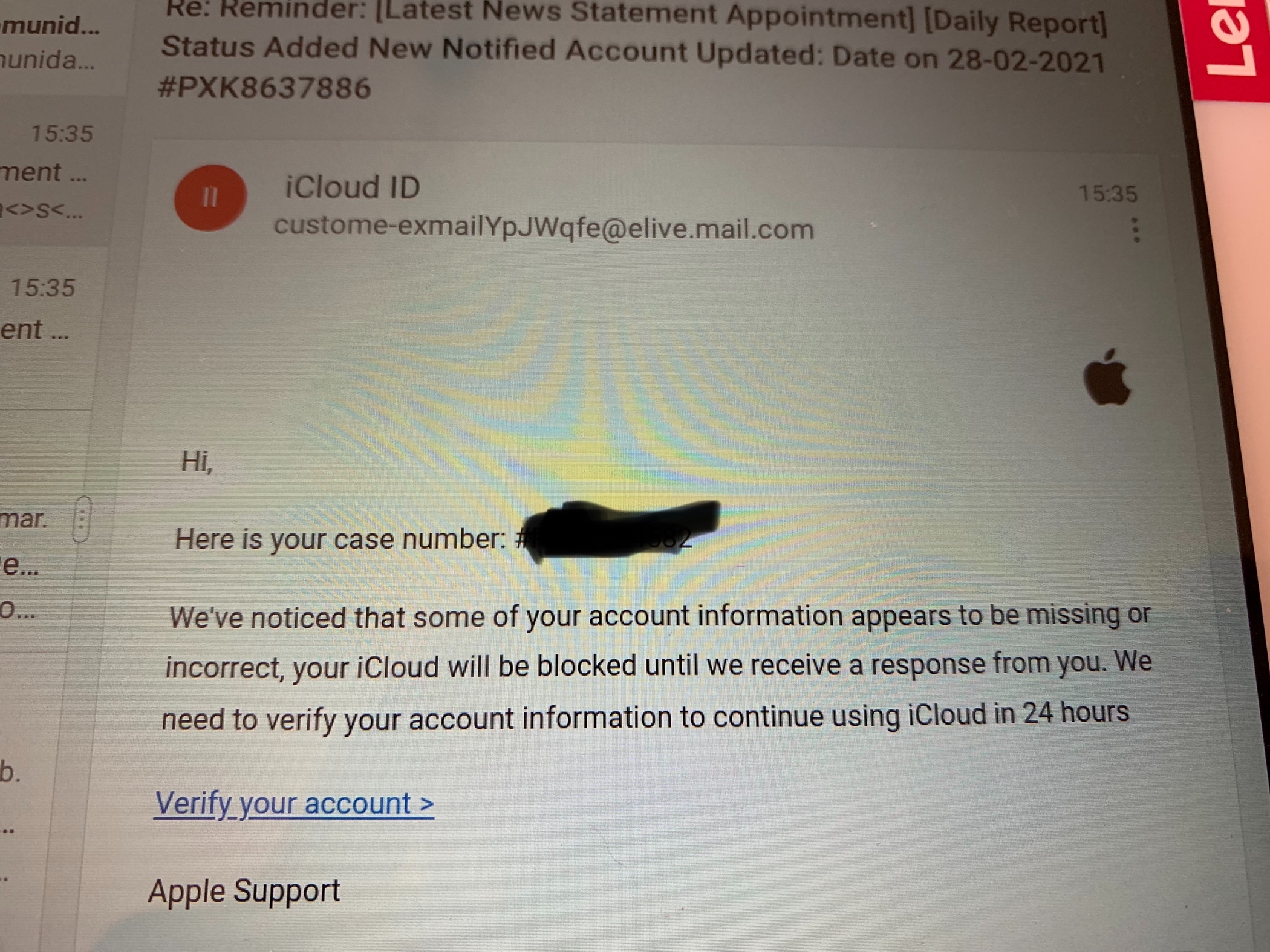 He recibido correo de ICloud con un enlace para verificar mi cuenta antes de 24 horas. Llevo usando el servicio más de 10 años y me parece raro.