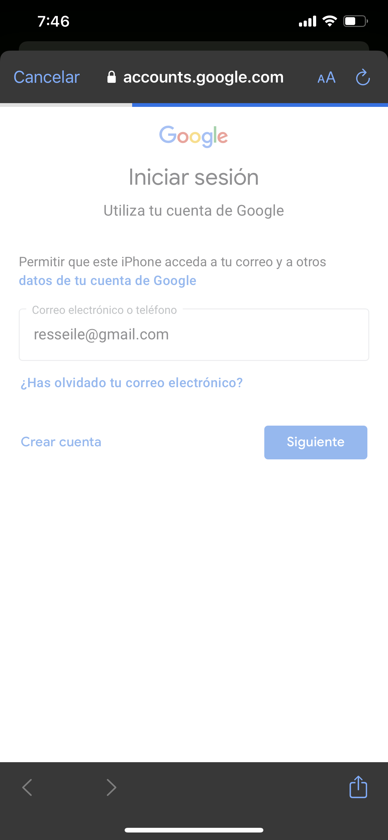 ya restablecí mi iPhone y continua en la misma situación; también borre cache y cookies en Safari y continuo con la misma situación; se congela cuando ingreso el usuario en el enlace que me lleva después de tocar en cuanta Google el enlace es: accounts.google.com adjunto una foto en lo que me puedan ayudar por favor! Ya que si no inicio sesión no cargar en mis contactos mi libreta de números de teléfonos y otra información gracias