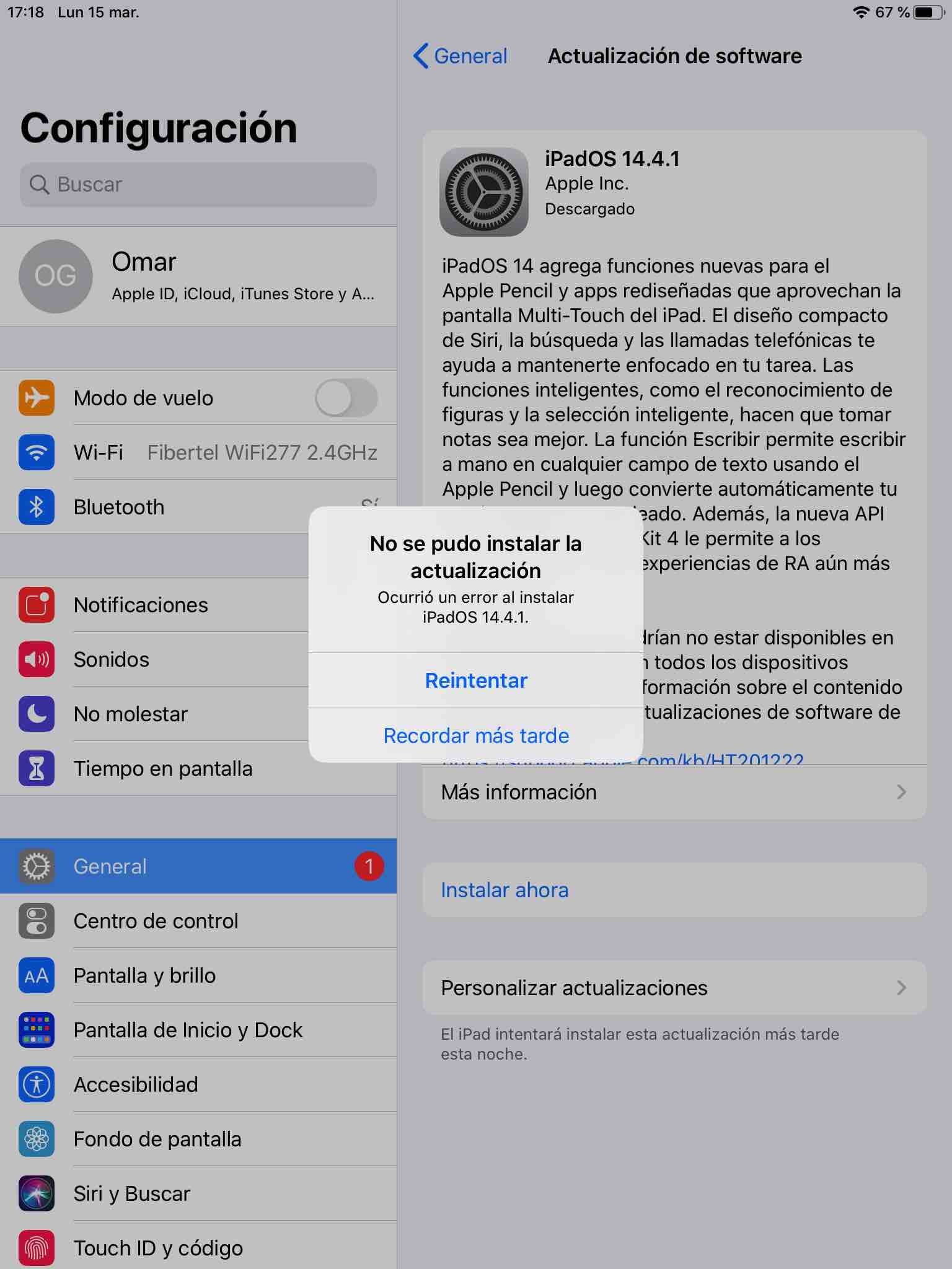 Hola! Trato de actualizar el software pero me dice que no se puede.