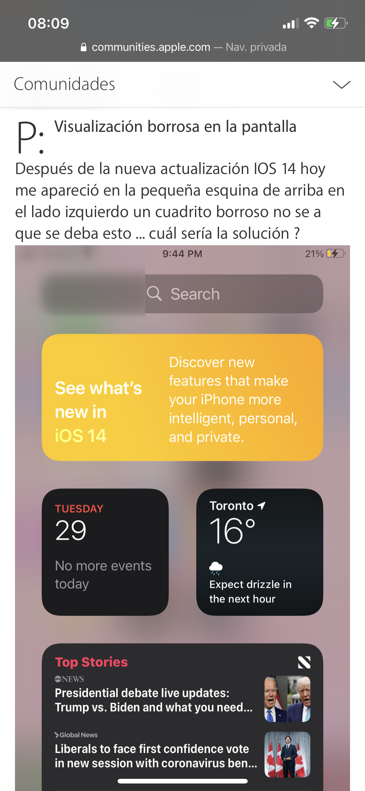 Absolutamente se veia igual que en la foto de ese post. Al reiniciarlo se salió pero me quede con la duda de cual es la causa de este problema. Tomando en cuenta que compre el iPhone 12 hace 2 meses
