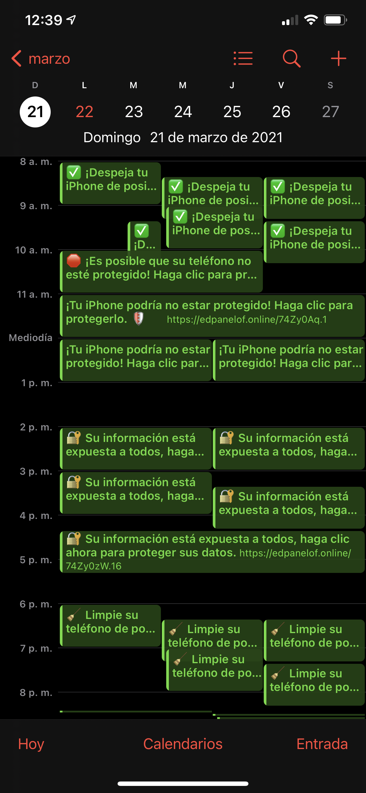 Ayer en la noche instalé la nueva versión de actualización de software, y desde ese día tengo problema con mi iPhone , en mi calendario a partir del día de hoy sale cada hora q hay virus en mi celular y que va afectar todas mis cuentas , q va afectar mi SIM card y va dañar toda mi información , necesito ayuda urgente