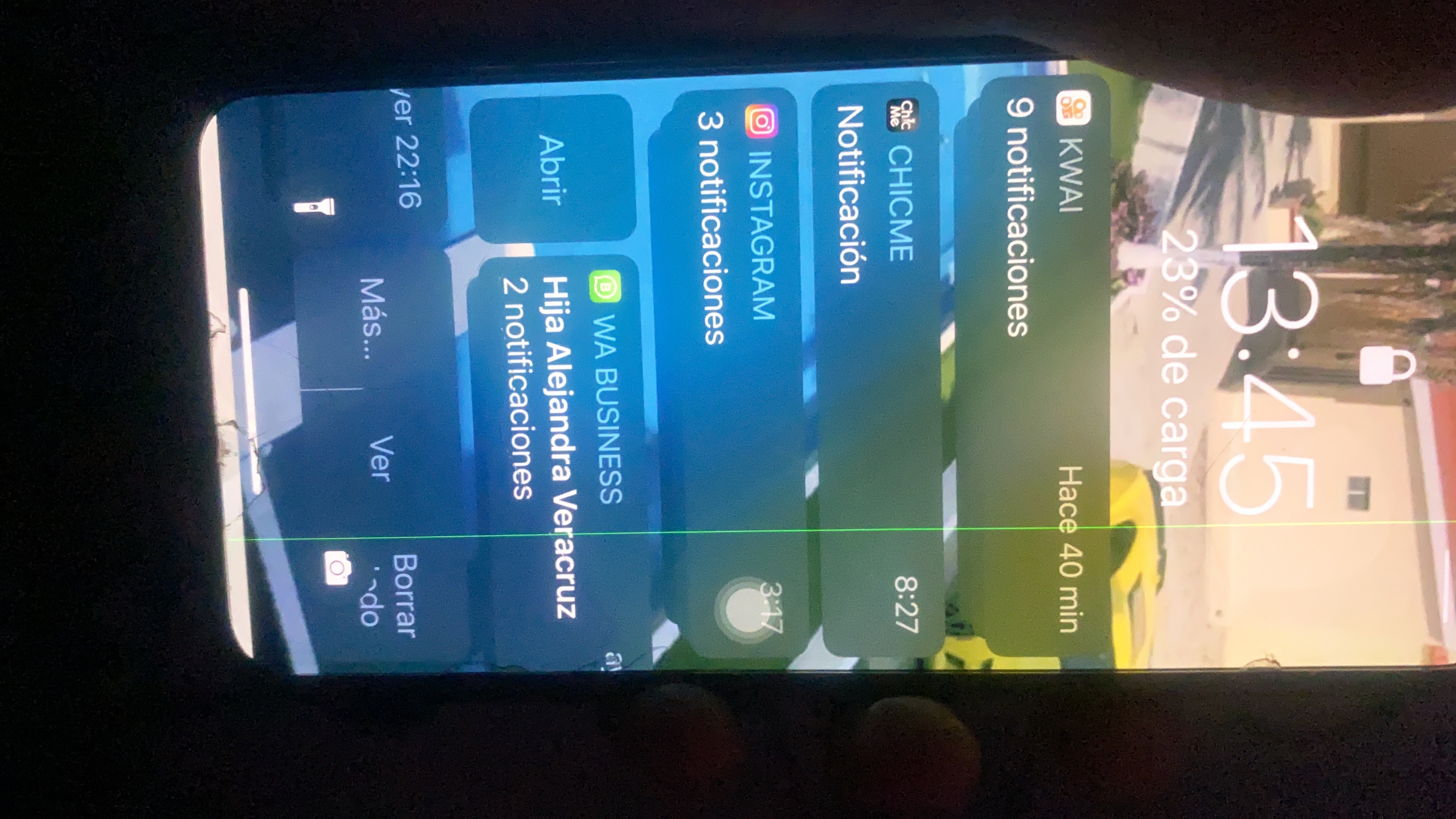 hace unos días se me cayo mi iPhone X al agua y enseguida lo saqué y lo seque y apliqué el método del arroz durante 24 hrs y de repente prendió como si nada lo único malo fue es que se quedó con una pequeña línea larga de color verde, parpadea leve y después se apaga y el día de hoy prendió normal pero a los pocos segundos se apagó y se puso una pantalla de color verde entonces no que se que signifique si sea bueno o malo? O qué debo de hacer