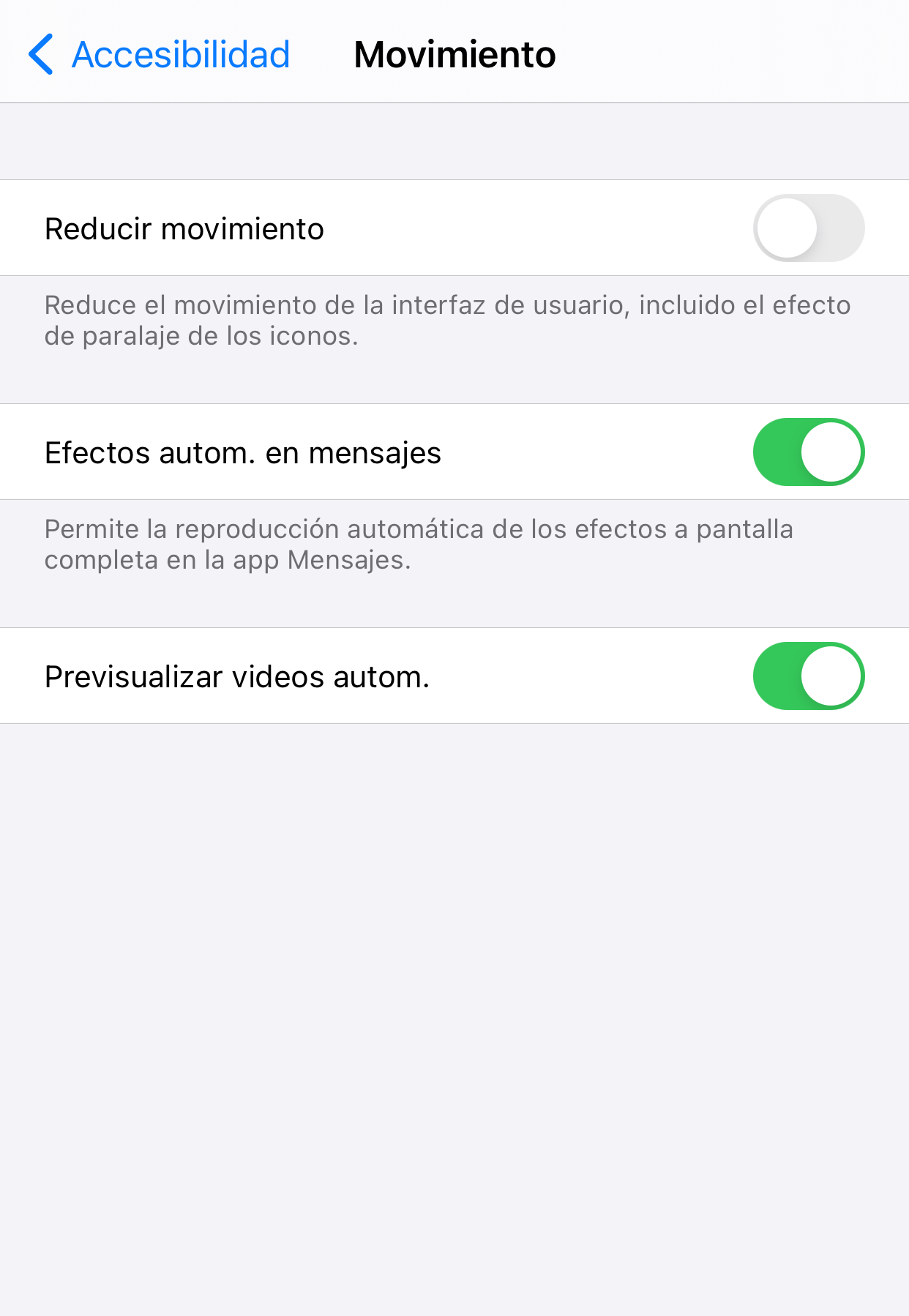 He detectado que hay una falta de ortografía en Ajustes>Accesibilidad>Movimiento>Previsualizar videos autom.