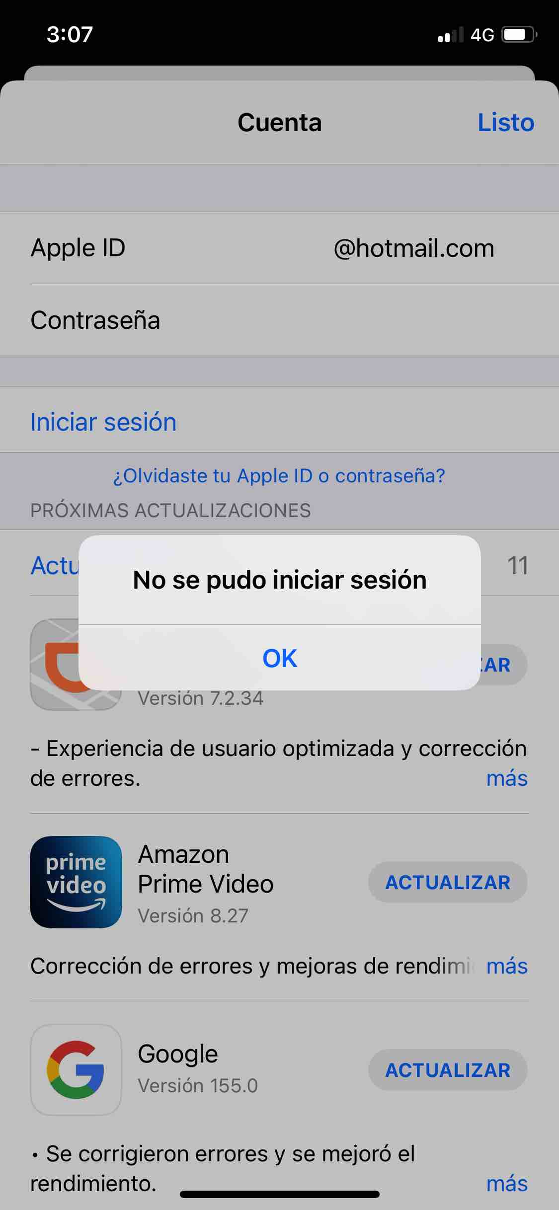 No me deja ingresar App Store y no puedo actualizar mis aplicaciones