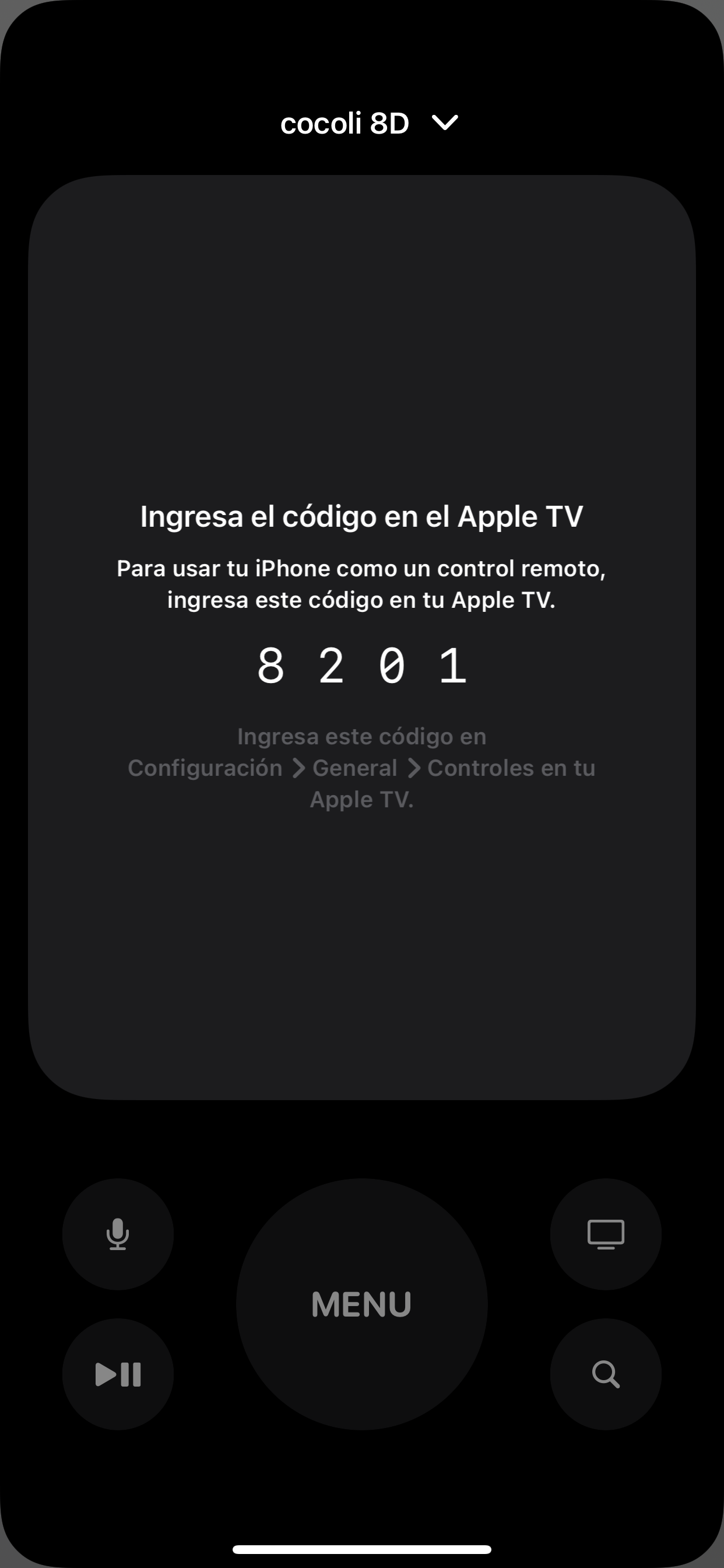 estoy intentando configurar mi iPhone 11 como remote control. Conecte el Apple TV a electricidad, cable ethernet y hdmi al Tv. Al agregarlo por centro control y remote control me pide introducir un código de 4 números al Apple TV por configuración. Y no tengo cómo poner ese código pues no tengo el control.