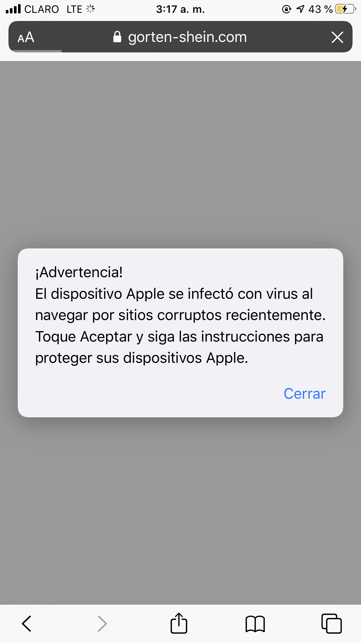Ventanas emergentes de safari y me daba una alerta para bajar app de antivirus desde App Store