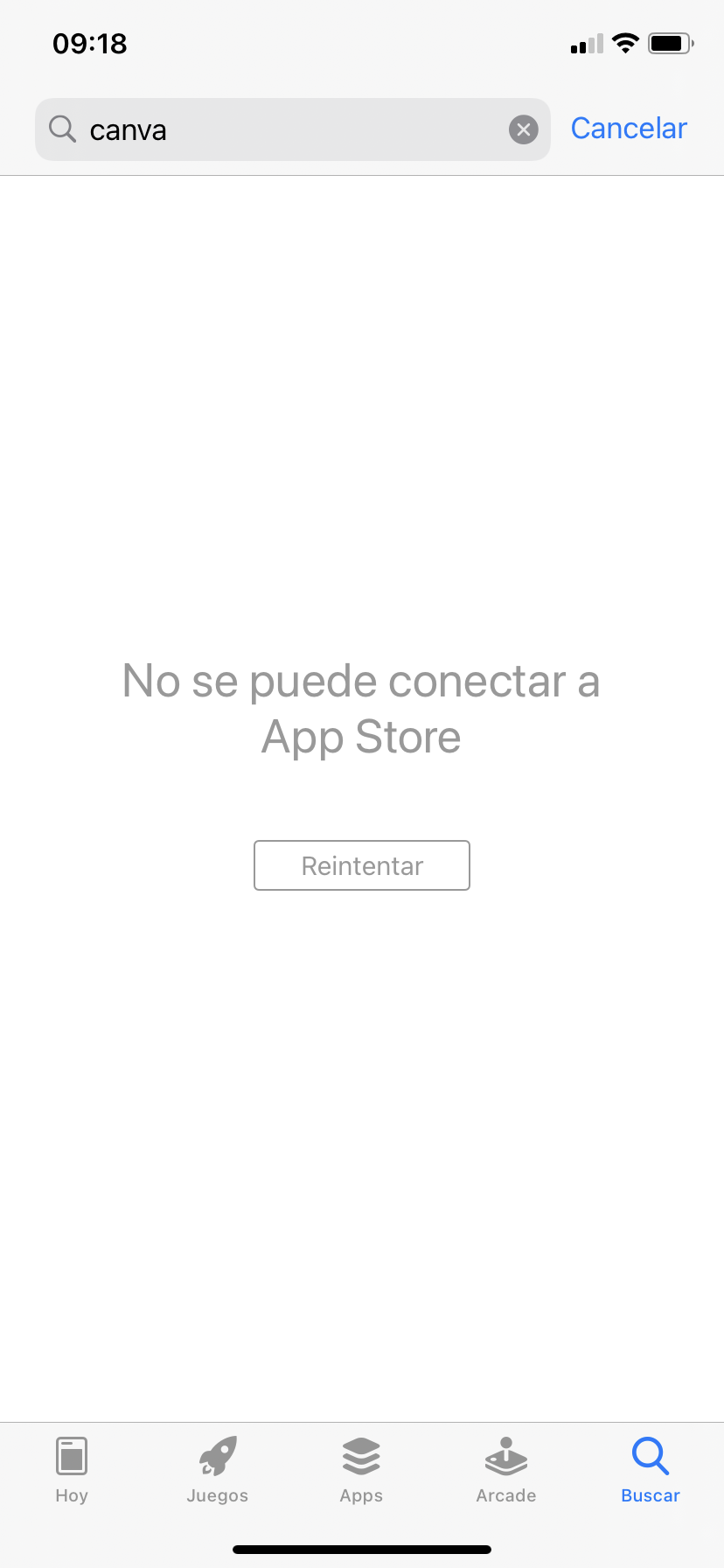 Hola, entro a App Store y no me deja descargar ninguna aplicación. Me salta “ No se puede conectar a App Store, reintentar”