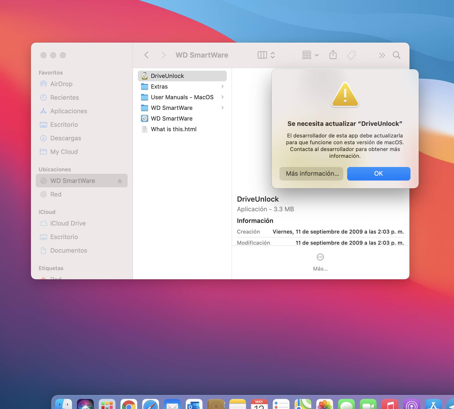 Descarga una versión más nueva de WD Security desde esta web: https://support.wdc.com/downloads.aspx?&lang=ls#WD_softwaremac