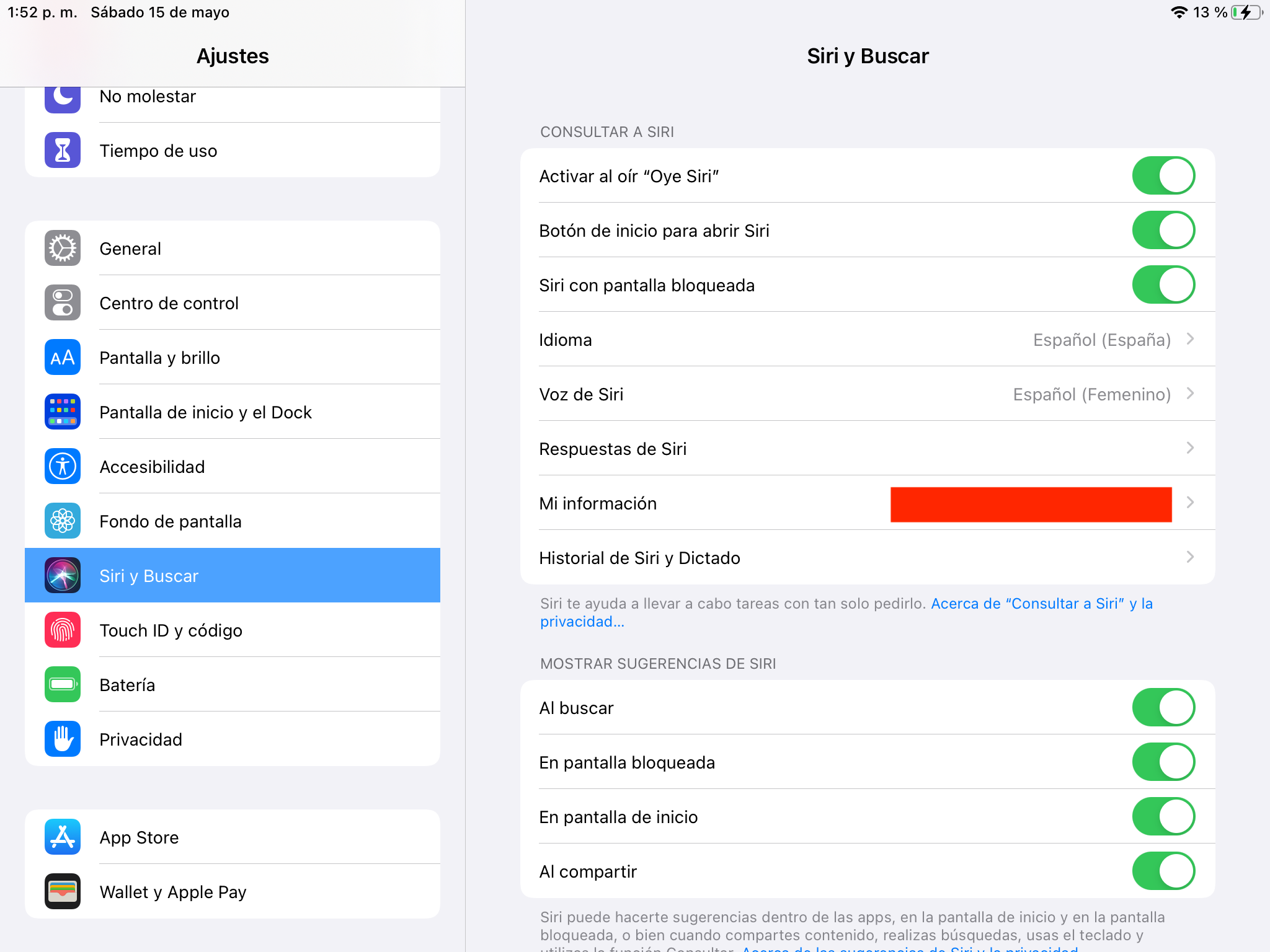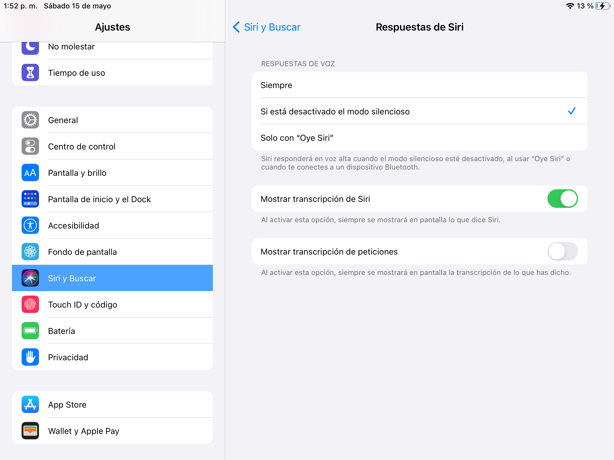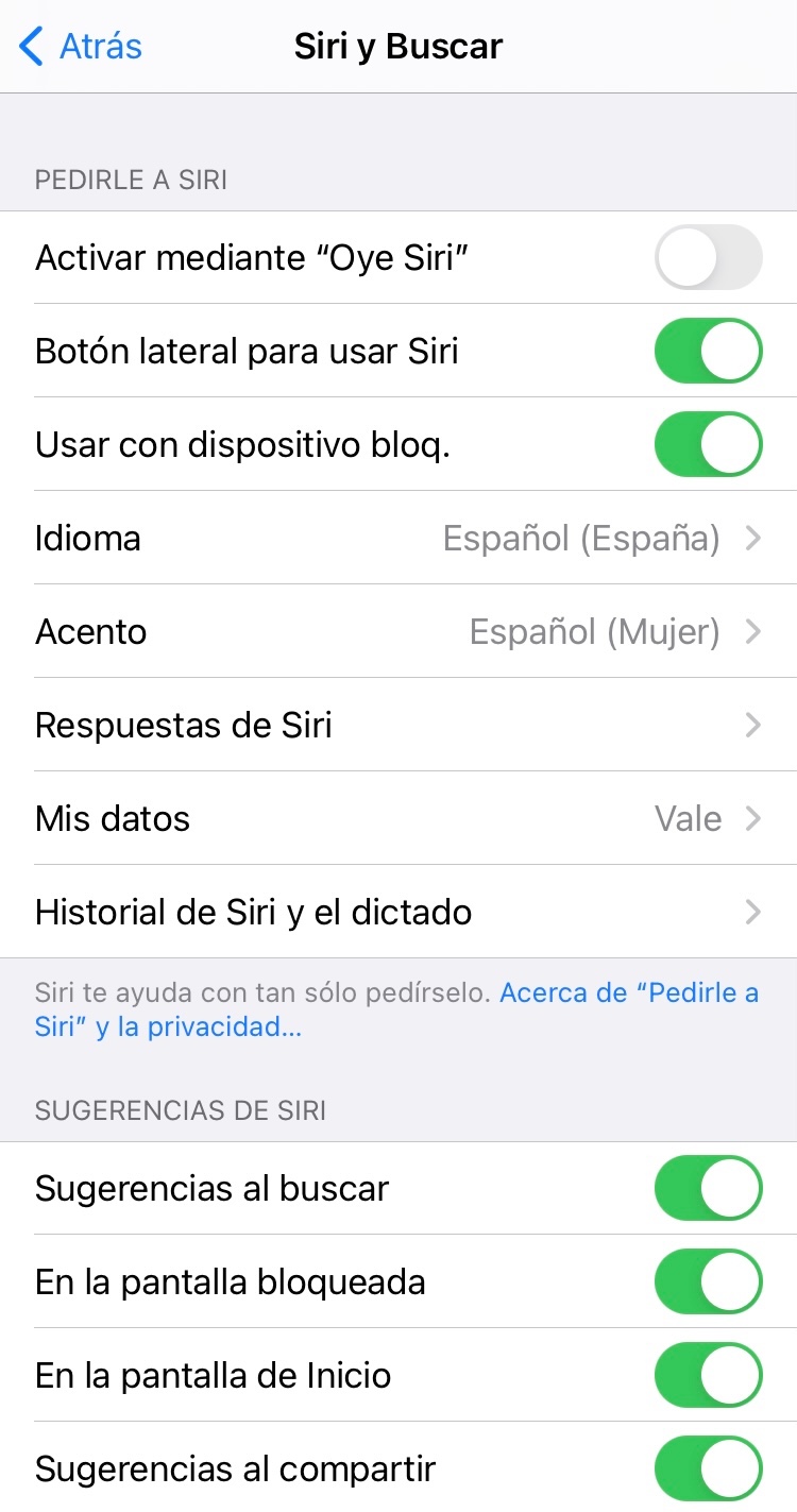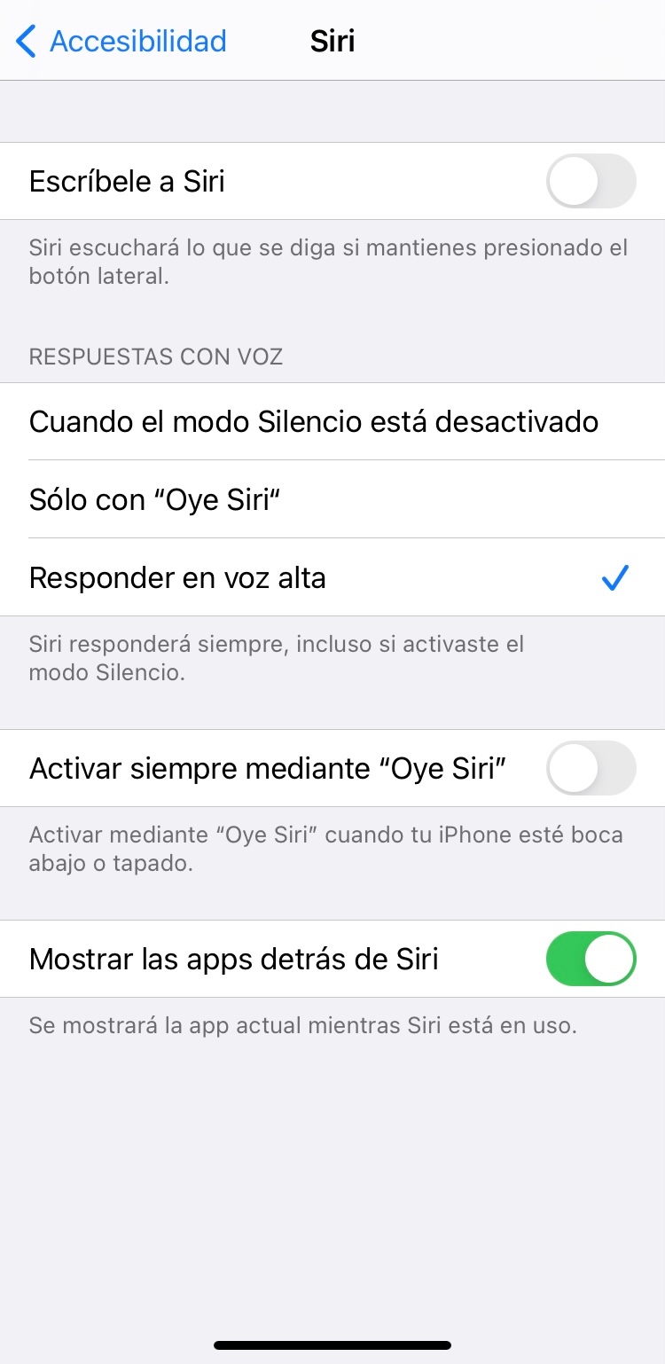 y cuando quiero configurar a Siri, en esta pantalla se queda como escuchando y no hace nada.