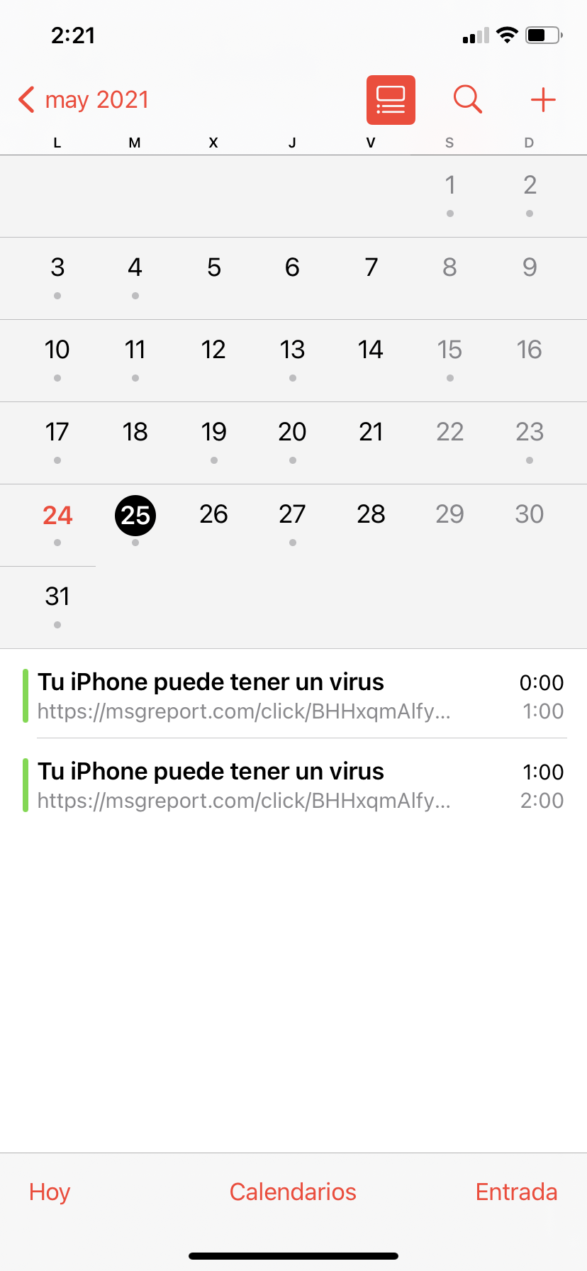 Me están entrando todo el día avisos desde el calendario del iPhone que tengo un virus. Que puedo hacer?