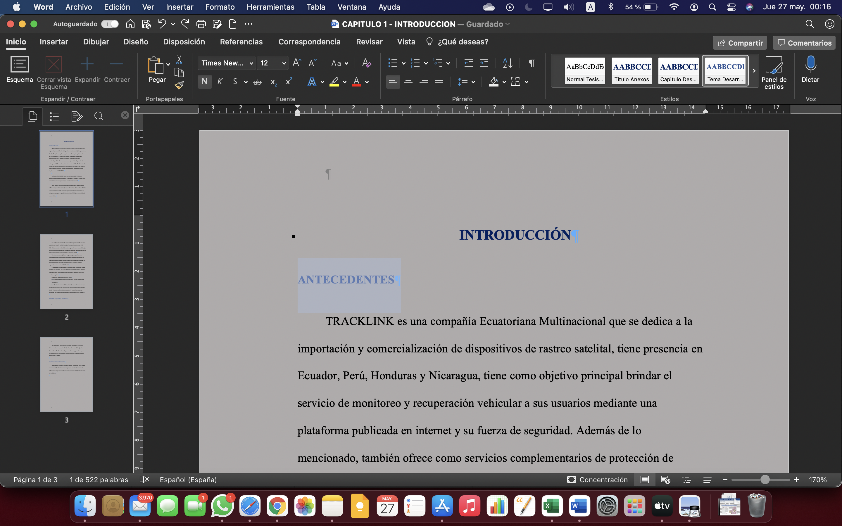 NOTA: Ver imágenes adjunta, ni el título "INTRODUCCIÓN" ni "ANTECEDENTES" muestran la marca (tríangulo).