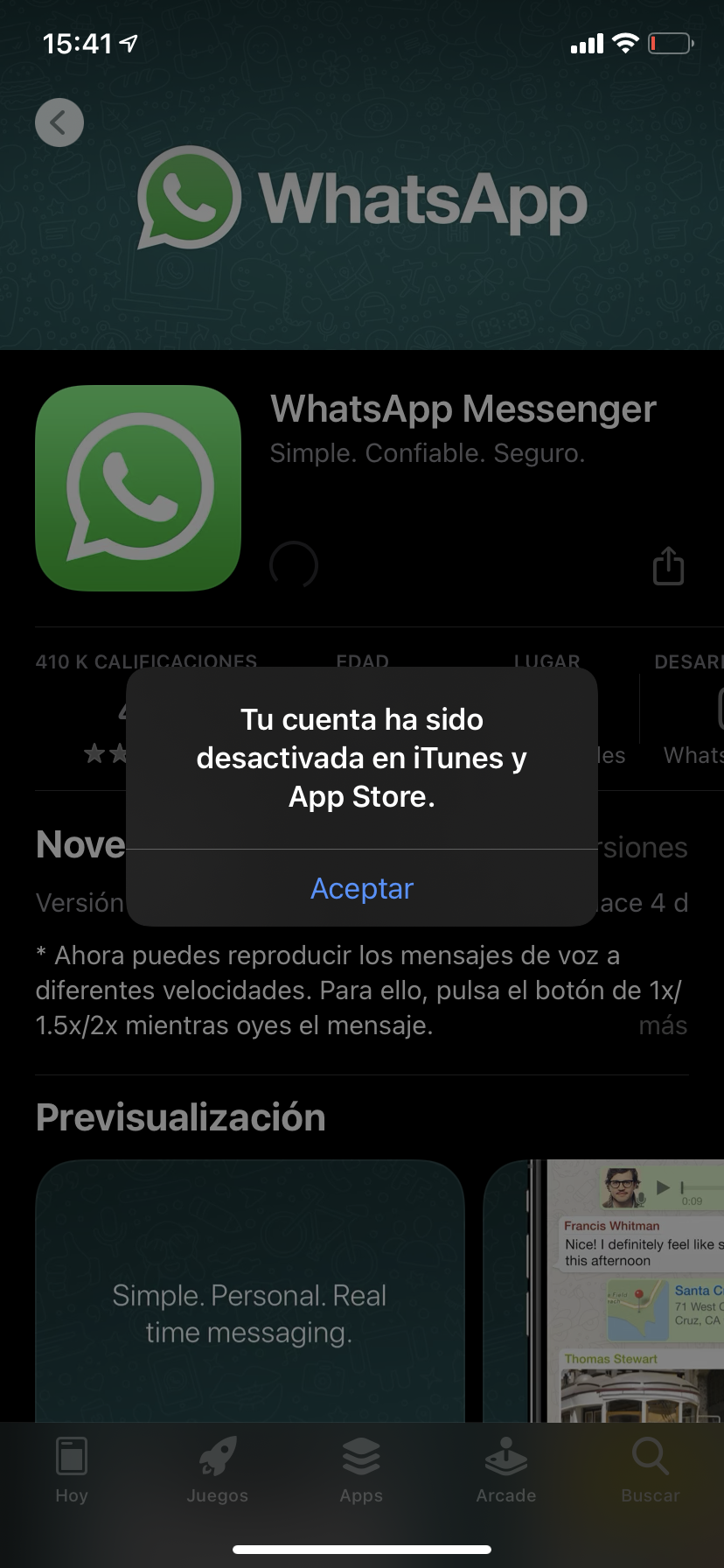 Si en tu dispositivo aparece un mensaje que indica que tu cuenta se desactivó o deshabilitó en el App Store, es posible que haya un problema con el método de pago que tengas registrado.
