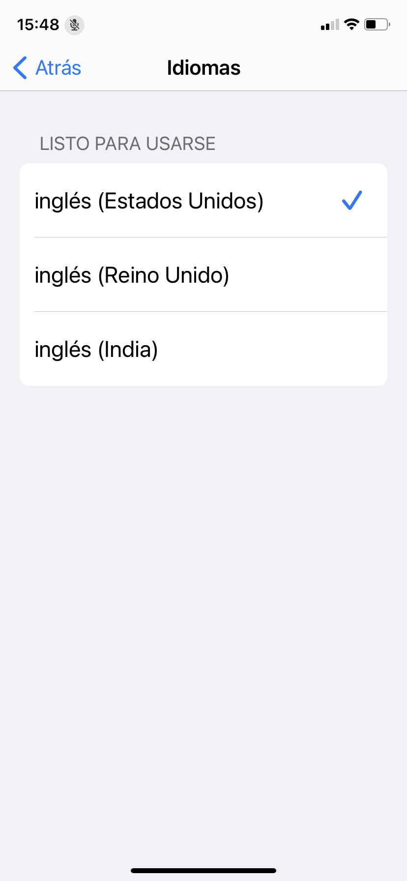 No me aparece el idioma es español en el listado de idiomas de control de voz, solo aparece ingles, pero en el iPhone de mi esposa si aparece el español. ¿como hago para que me salga en español el control de voz ?