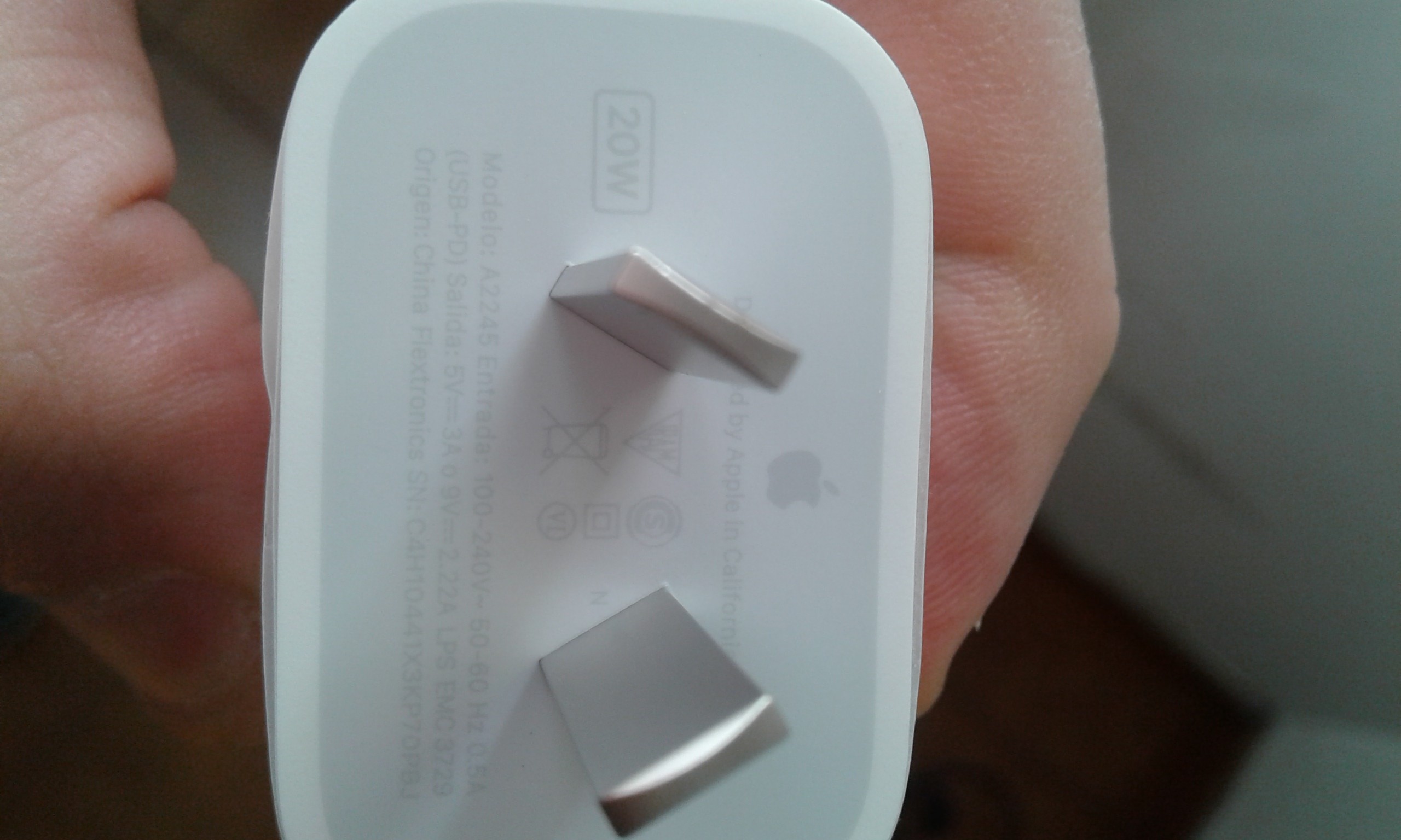 Hola comunidad Apple, soy de de Argentina y he adquirido un cargador en un Apple Reseller. El mismo vino en su caja presintada con su manual y garantía tal como acostumbra a embalar sus productos Apple. Mi curiosidad es que en la zona superior del cargador figura el logotipo de IRAM que es el ente regulador de artefacto electrónicos en Argentina y todas las demás indicaciones en español, sus clavijas son oblicuas es V y su numero de serie que es el mismo que el de su caja. Desde el lugar en donde los adquiri me explicaron que Apple los homóloga exclusivamente para Argentina. Esto puede ser correcto? Saludos a todOs y todas.