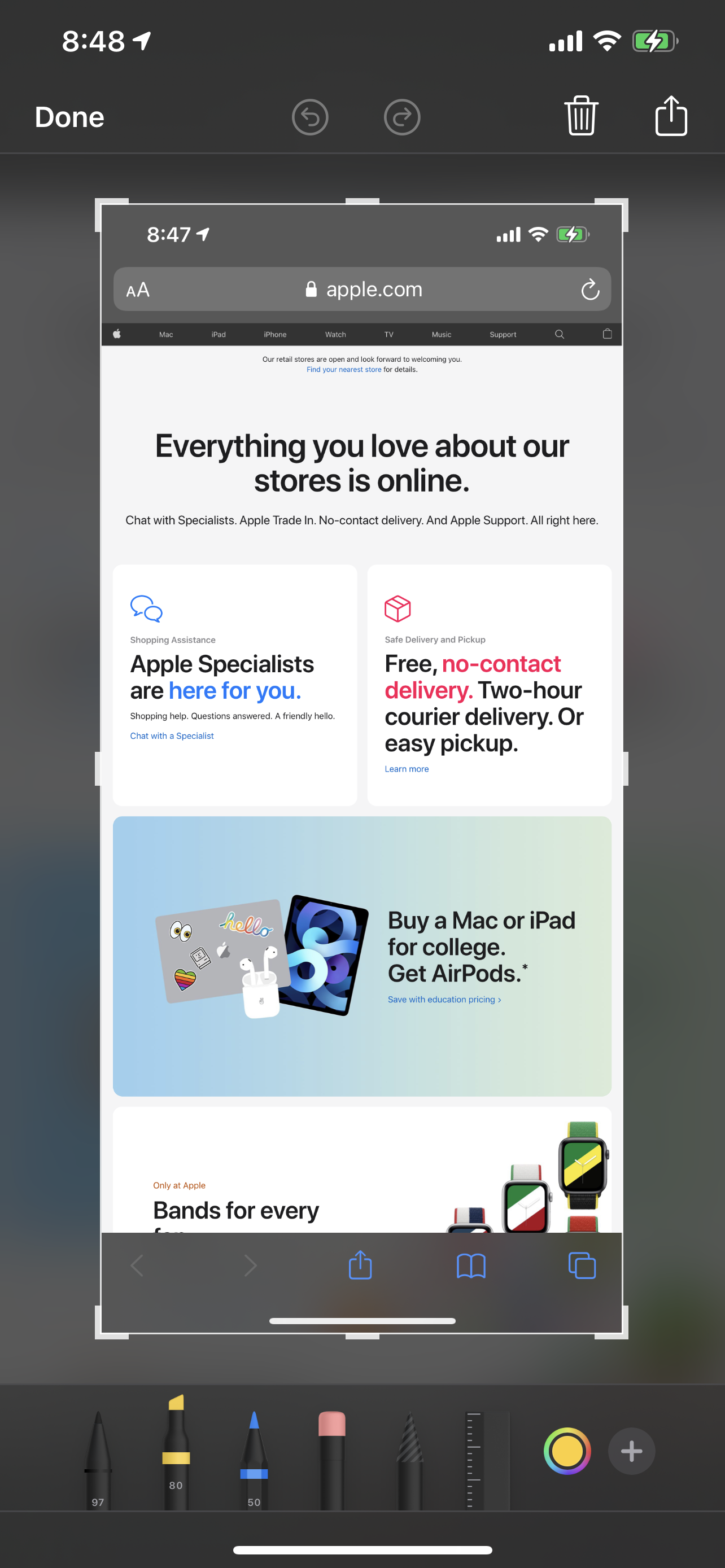 Quiero hacer captura de pantalla completa de una página web y no me da la opción, tengo iOS 14.6