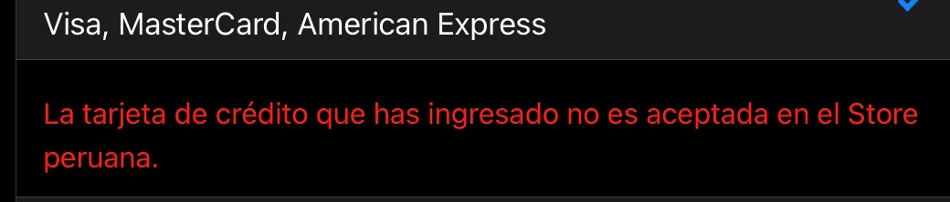 Si vas a comprar en la App Store de Perú, la tarjeta tiene que ser de una cuenta bancaria de Perú.