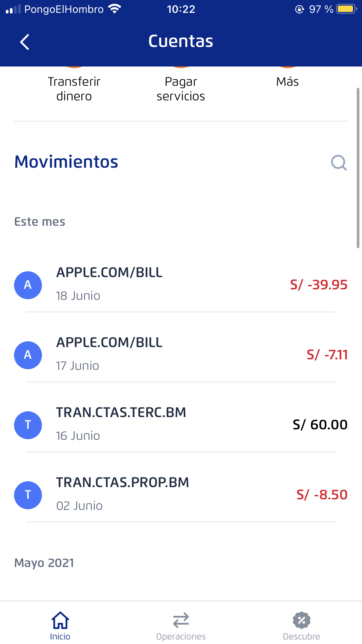 Disculpe, en los movimientos de mi tarjeta me aparece que me quitaron 39.95 y 7.11 soles y al ver en los movimientos de mi Apple no me aparece pero no he comprado nada, como podrían devolverme mi dinero?
