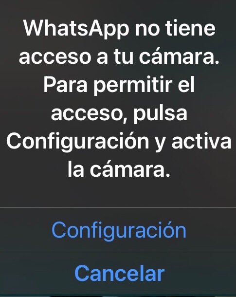 Los permisos a apps para las Fotos o la Cámara se dan desde los Ajustes del iPhone, Privacidad. Si lo estás intentado hacer desde esa ubicación y no puedes, comprueba que no tengas activadas las restricciones para la Cámara o las Fotos. Lo puedes comprobar desde los Ajustes del iPhone, General, Restricciones.