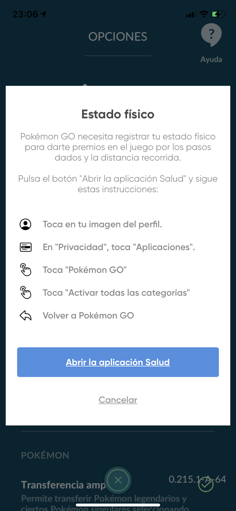Como agregó pokemon go a la app de salud ya que no aparece en fuentes?? Necesito activar una sincroaentura?