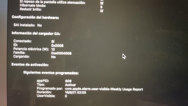 MacBook Pro 2018 - icono de batería activo con cargador desenchufado
