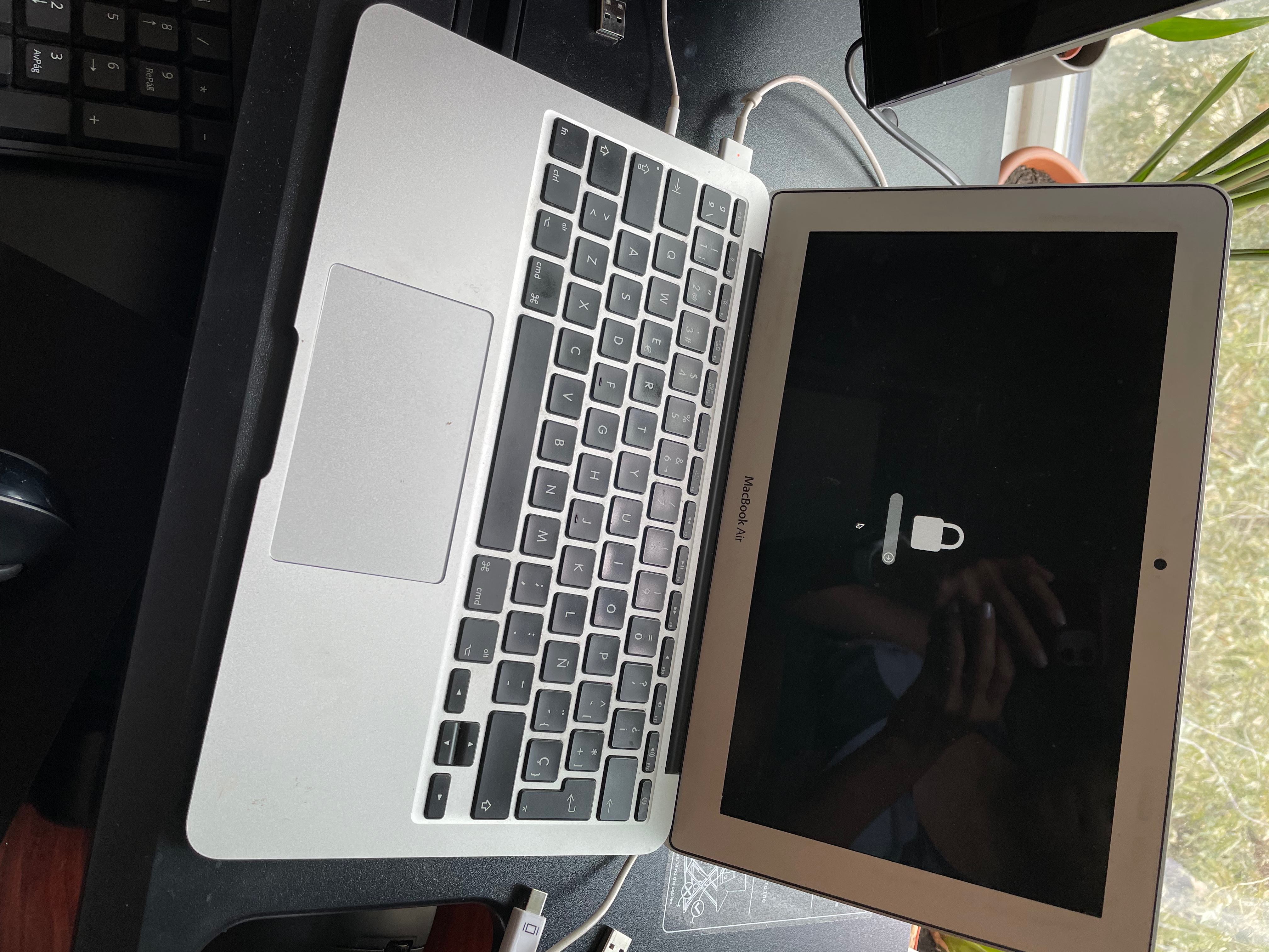 Mac air no inicializa, sale pantalla negra con un candado. Ingreso mi contraseña habitual y no funciona