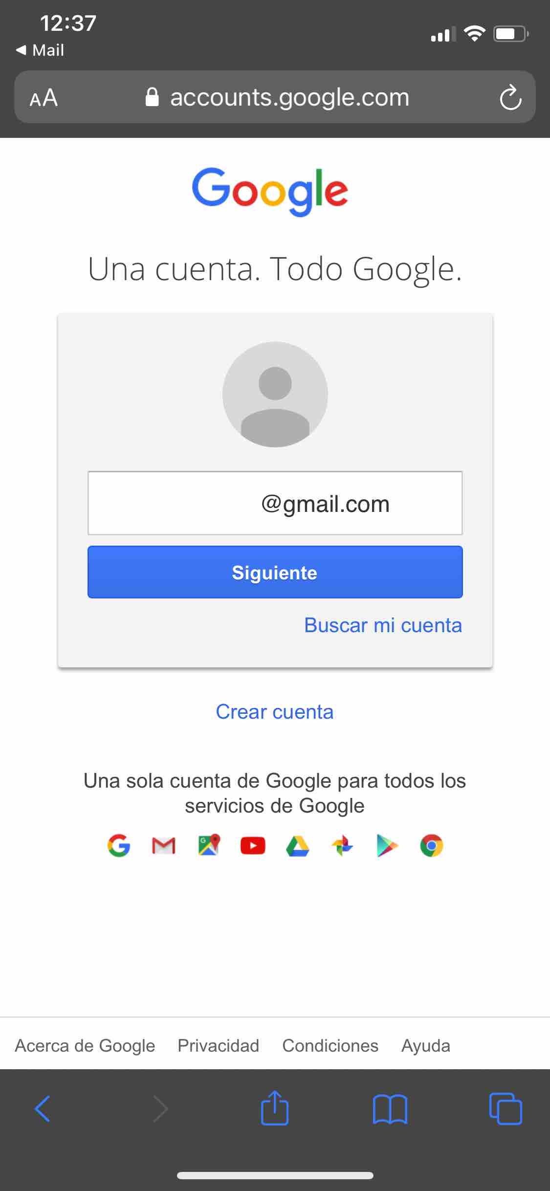 Desde un primer momento en la consulta ha sido gmail, no tienen nada que ver gmail y iCloud; para ver iCloud, por si acaso mantuviera los correos, sería en icloud.com, te identificas y miras a ver, pero claro, es gmail lo que está en el asunto y en eso me he centrado.