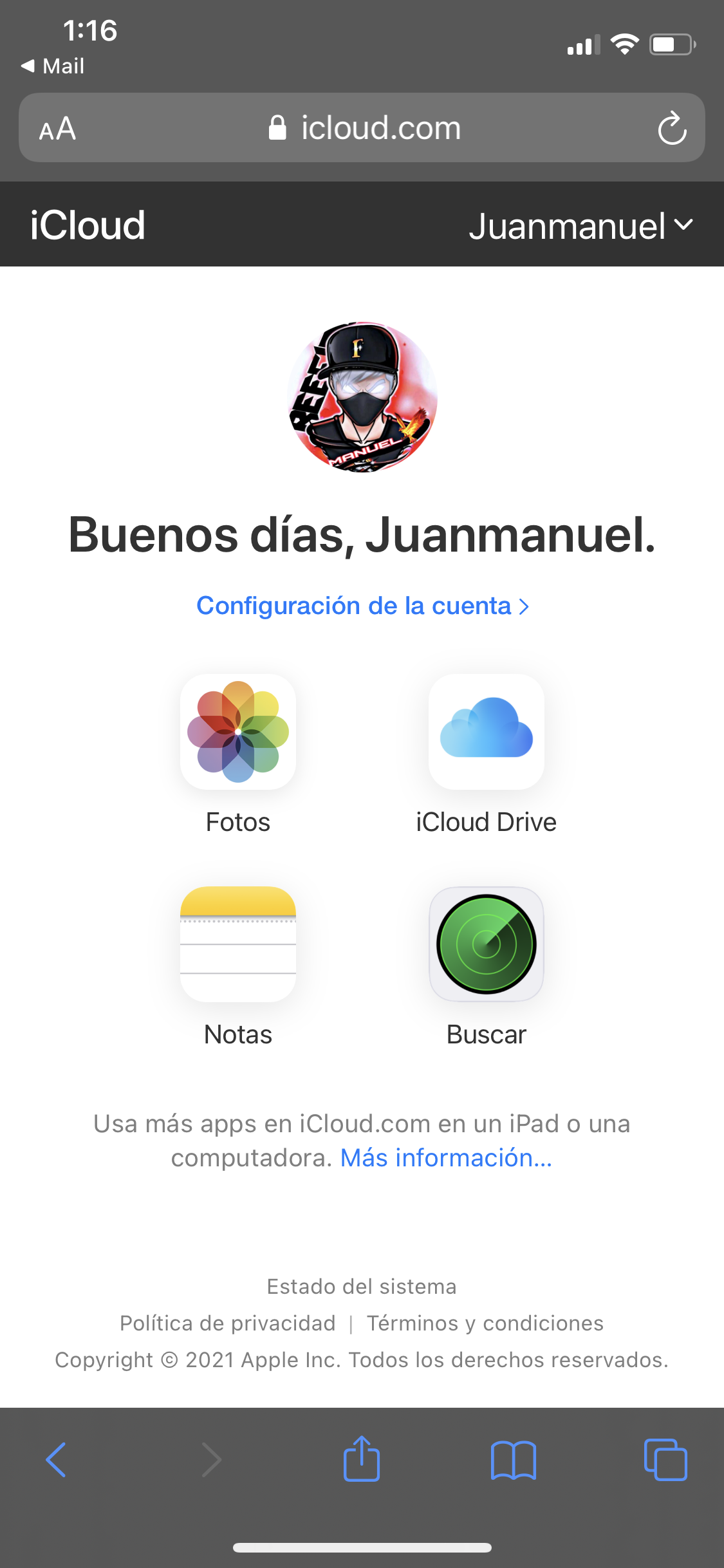 , Después de haber iniciado sesión en icloud.com en tu iPhone