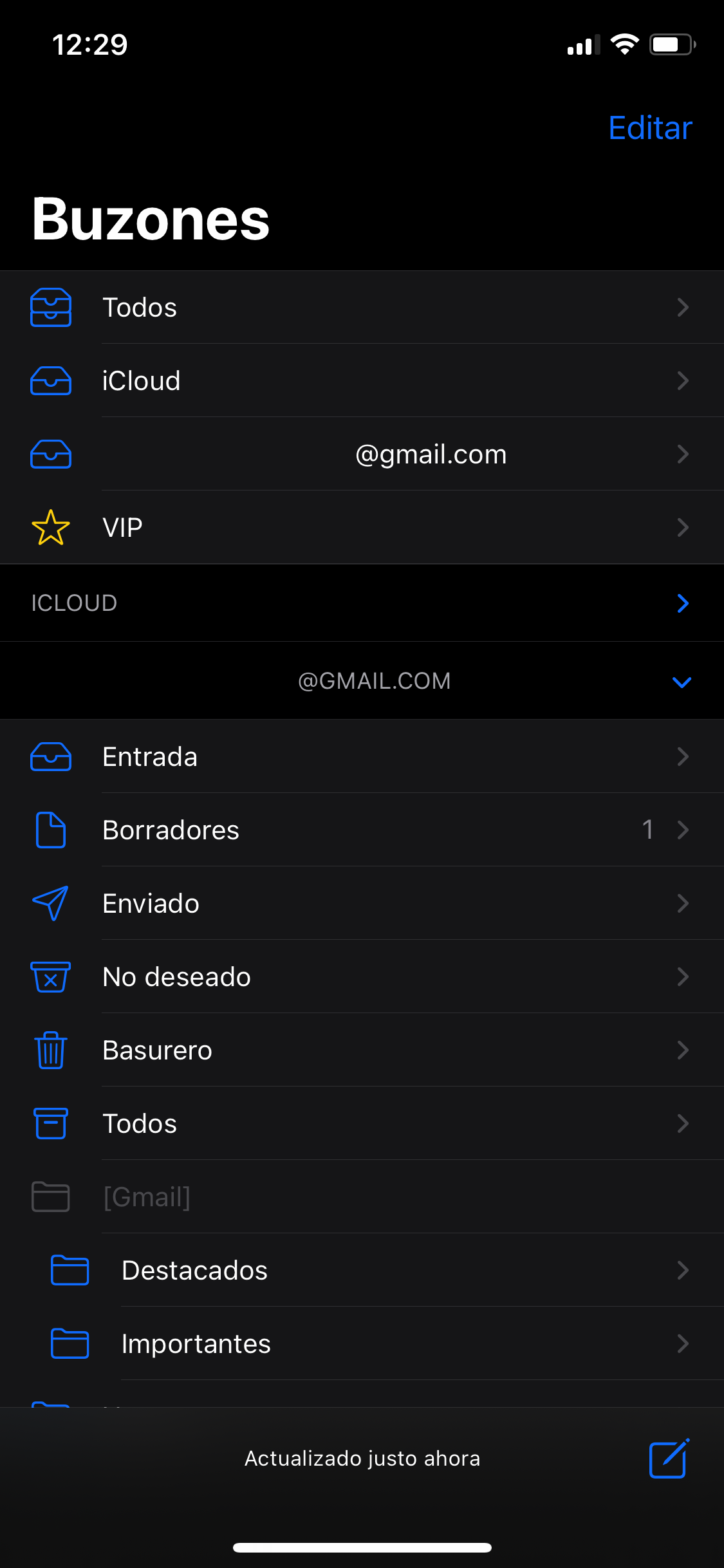 El problema está con esta cuenta de iCloud aquí fue que llegaron los mensajes que elimine de gmail pero son de iCloud en tiendes