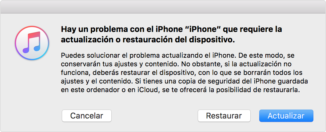 Ahora, tu ordenador debería haber detectado que el iPhone está en modo DFU y te permitirá restaurarlo.