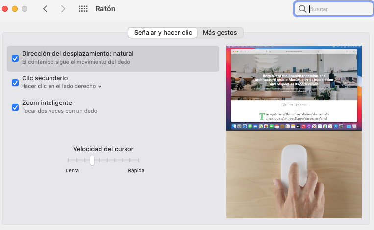 debes de entrar en Preferencias del Sistema, entra en ratón y verifica que tengas elegidas las casillas siguientes: