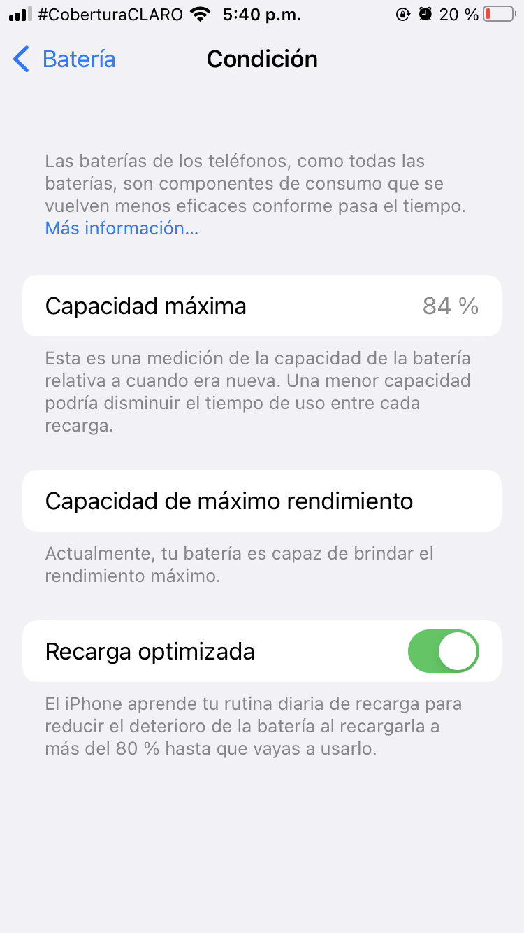 Acerca de la recalibración de los reportes de la condición de la batería en iOS 14.5