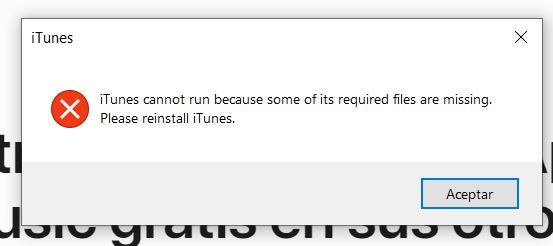 tras actualizar iTunes deja de funcionar con el siguiente error