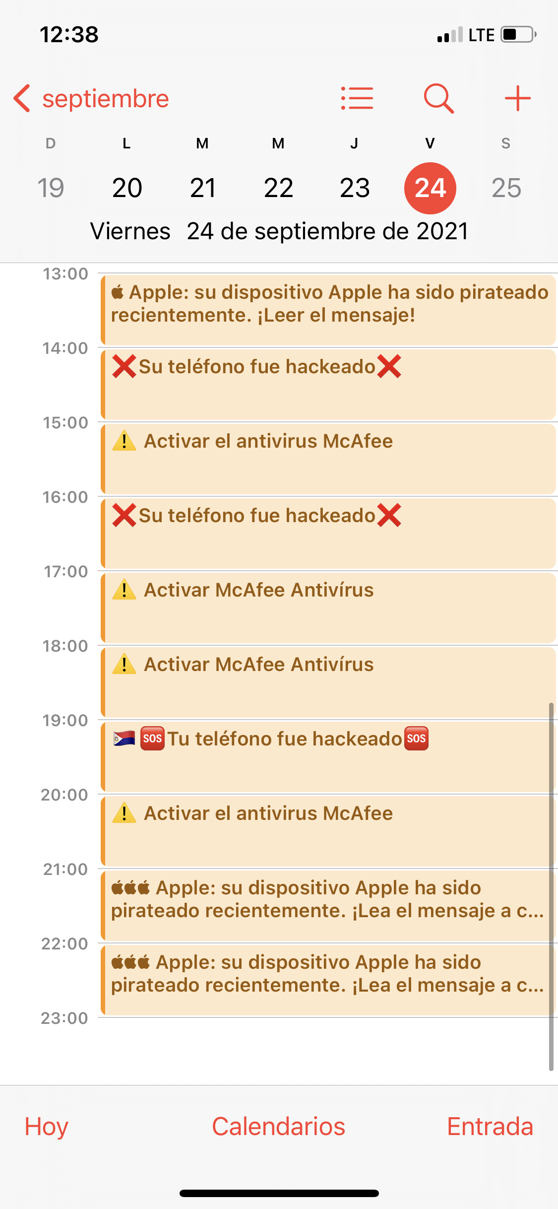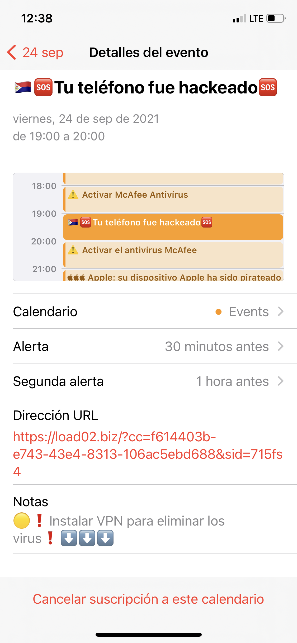 Entiendo que estás recibiendo eventos de un calendario que se te ha instalado de forma engañosa.