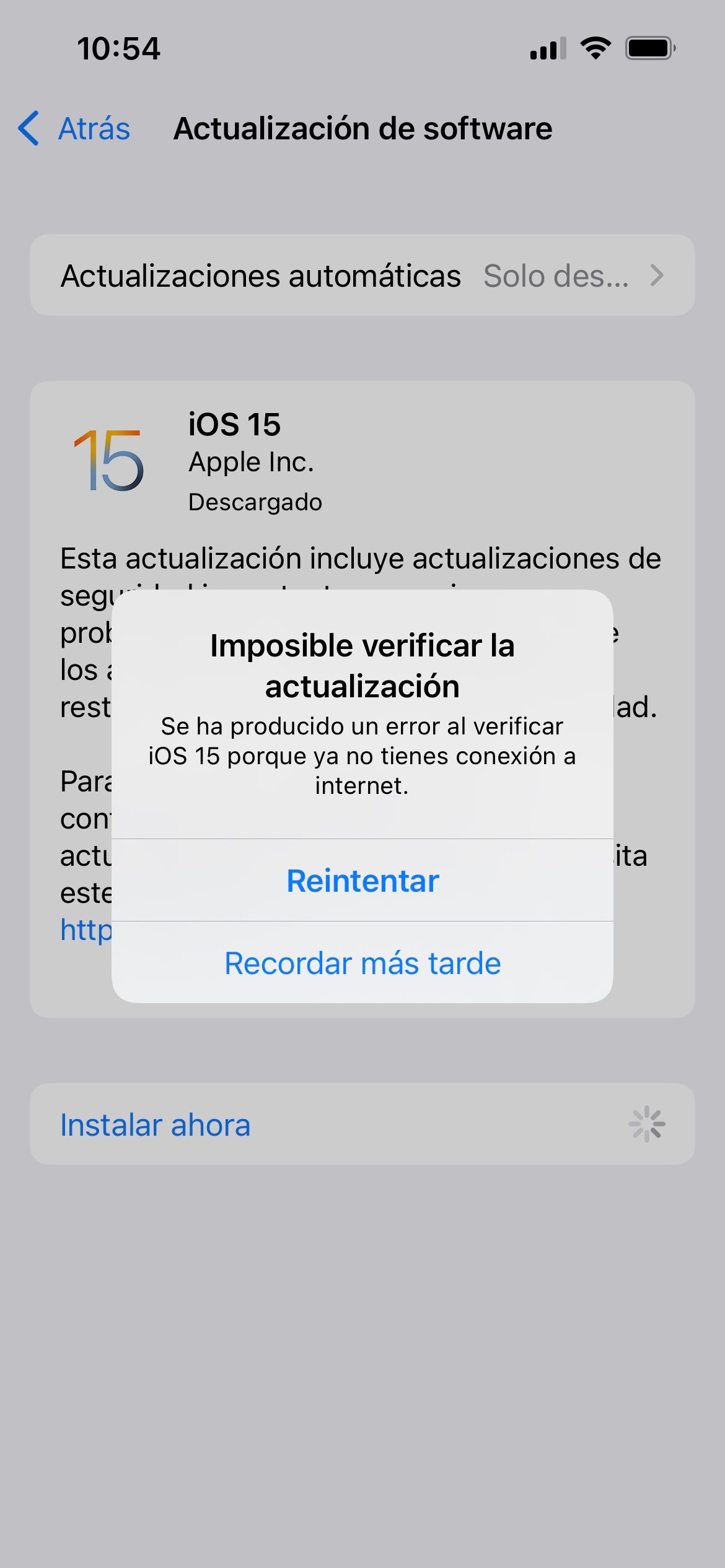prueba a apagar el iPhone, esperar unos momentos, encender y probar de nuevo a ver si te deja; si eso no funcionara, revisa la conexión a internet, apagando si fuera preciso el router, esperar unos momentos, encender y de nuevo probar. Ya nos comentas.