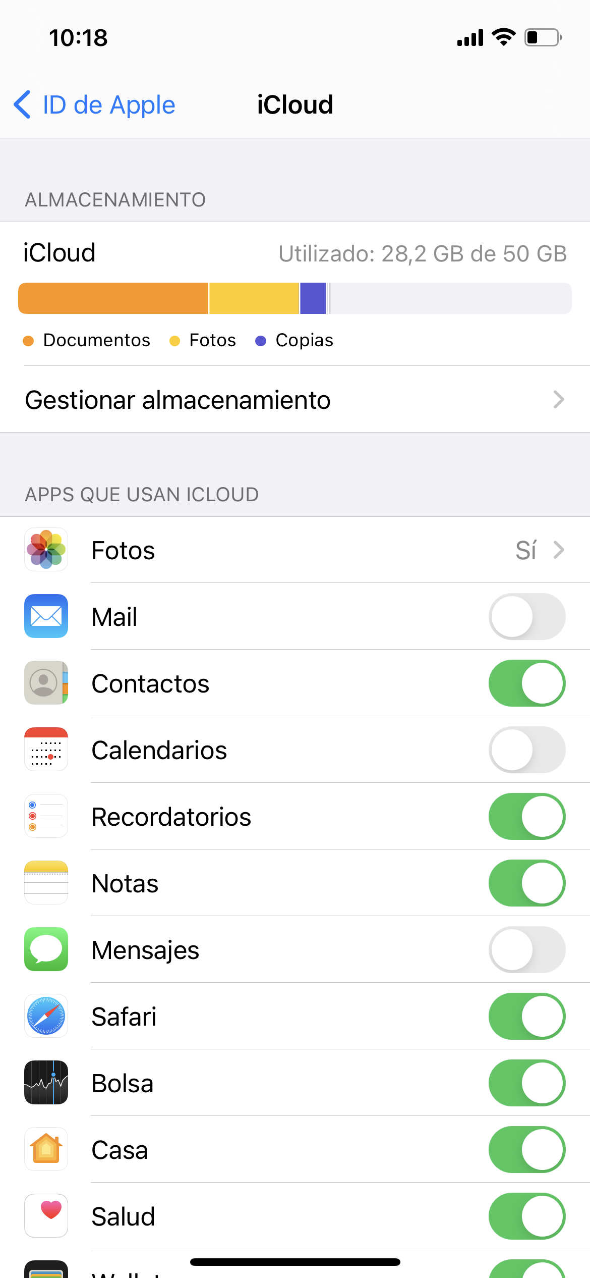 más abajo verás -imagino- que tienes Pages, Garageband, Libros, notas de voz y las apps que tengas que estén en iCloud, todo eso ocupa, entonces lo suyo es verlo mejor desde el Mac, por espacio visual, y determinar qué quieres que esté en iCloud o no, porque por ejemplo en Pages y similares se tienen documentos, pueden ser muchos, pueden ser pdfs pesados, pueden ser muchas cosas, míralo detenidamente para saber qué es lo que mide ese espacio.